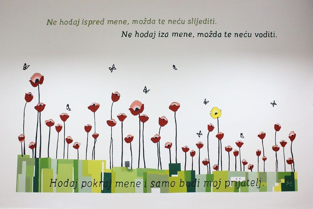 Prije pet godina na jednom zidu oslikan je Mural prijateljstva čija poruka glasi: "Ne hodaj ispred mene, možda te neću slijediti. Ne hodaj iza mene, možda te neću voditi. Hodaj pokraj mene i samo budi moj prijatelj." Mural se nalazi u Učeničkom domu Split, a spomenuto prijateljstvo već godinama spaja tu odgojno-obrazovnu ustanovu sa Školom likovnih umjetnosti.