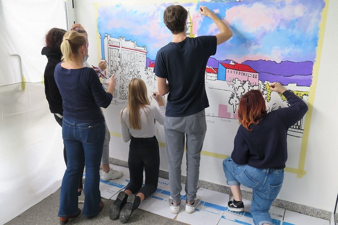 Učenički dom Split i Škola likovnih umjetnosti u Splitu nastavljaju svoju suradnju. Ima još mnoštvo zidova koji čekaju presvlaku u novo, koloritno ruho.