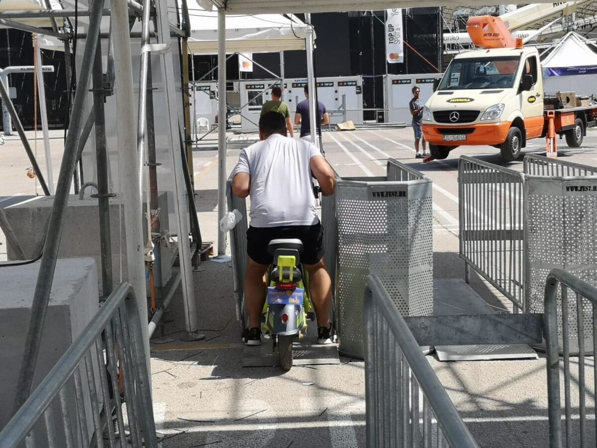 Osobita gužva se očekuje iza 12 sati kada se otvaraju kućice gdje će se predizati karte i akreditacije. Ispred samog stadiona zatekli smo glavnog organizatora Joa Bašića koji je na Poljud stigao na električnom mopedu.