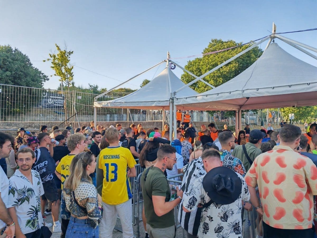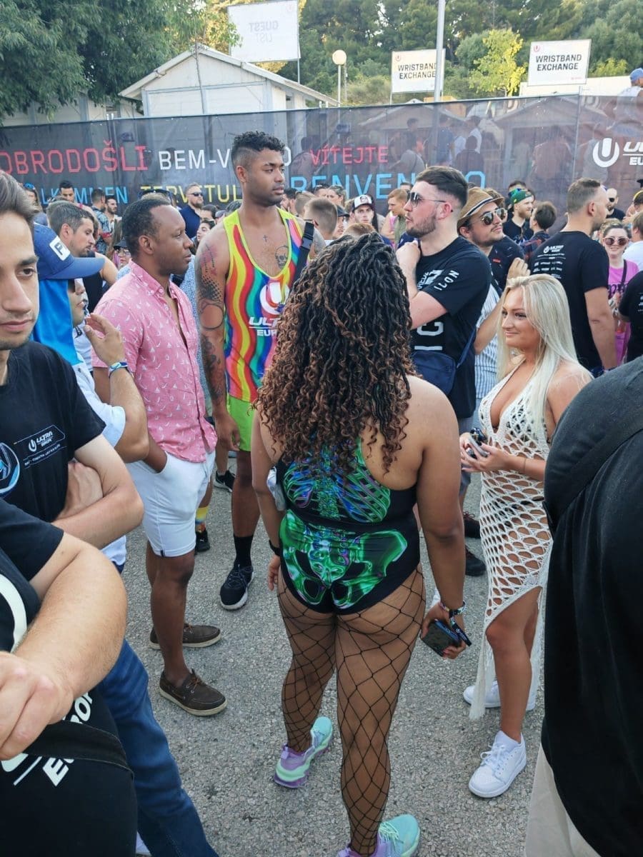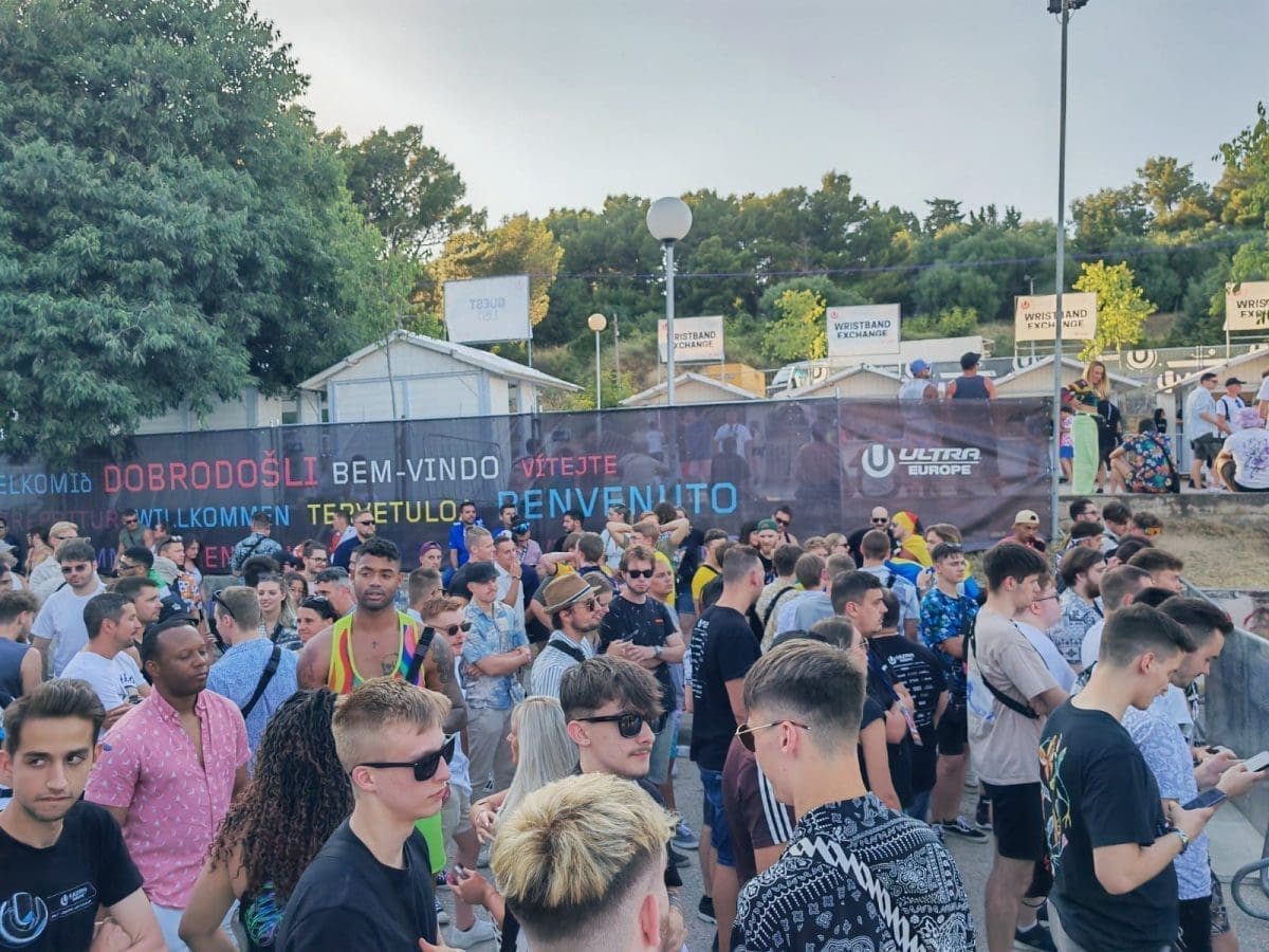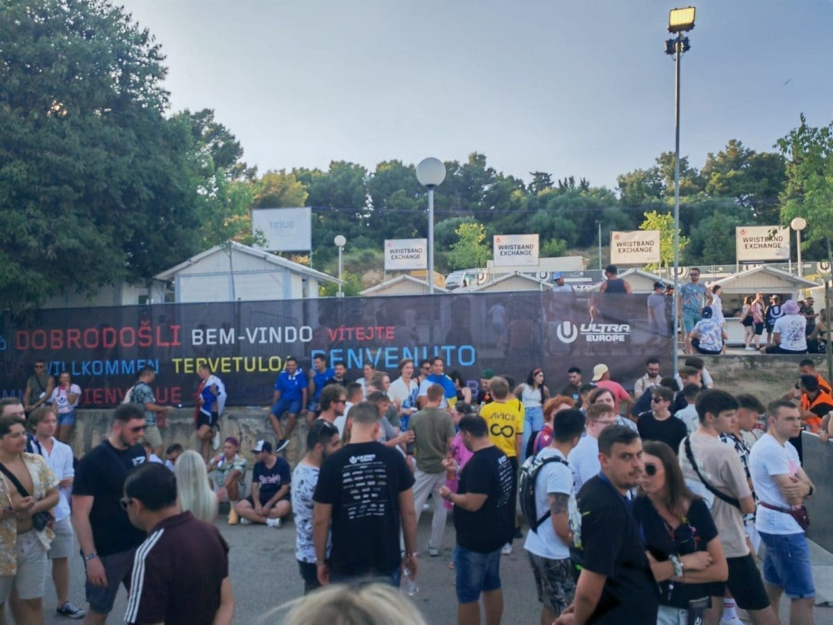 Ogromne gužve su na ulazu na Park mladeži gdje u 20 sati počinje Ultra festival. Ljudi se guraju ne bi li što prije ušli, a ima ih iz svih krajeva svijeta. Dok su se neki zaogrnuli zastavama svojih država, drugi šetaju okolo polugoli.
