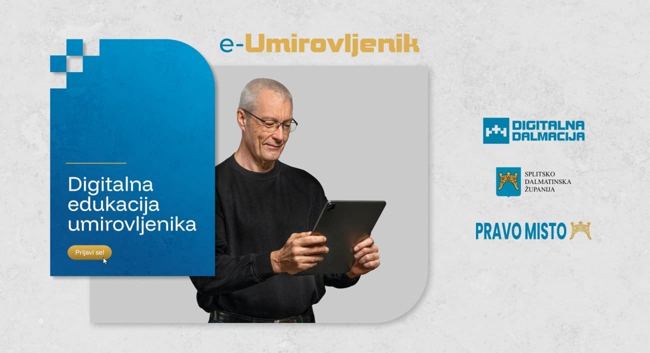 Umirovljenici Splitsko-dalmatinske županije imaju priliku zakoračiti u svijet digitalnih tehnologija i otkriti koliko im internet i pametni telefoni mogu olakšati svakodnevni život. Novi projekt e-Umirovljenik, koji se provodi u okviru županijske platforme Pravo Misto, osmišljen je s ciljem - poboljšati kvalitetu života osoba treće životne dobi kroz edukaciju o digitalnim tehnologijama.