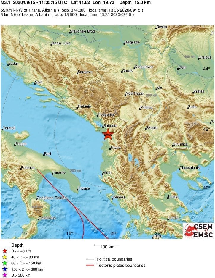 Magnituda potresa bila je 3,1 po Richteru, a epicentar 8 kilometara sjeveroistočno od grada Lezhë, 12 kilometara od obale Jadranskog mora.