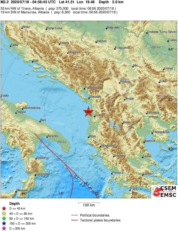 Dubina potresa procjenjuje se na dva kilometra, a osim u Albaniji, mogao se osjetiti u dijelu crnogorskog primorja.