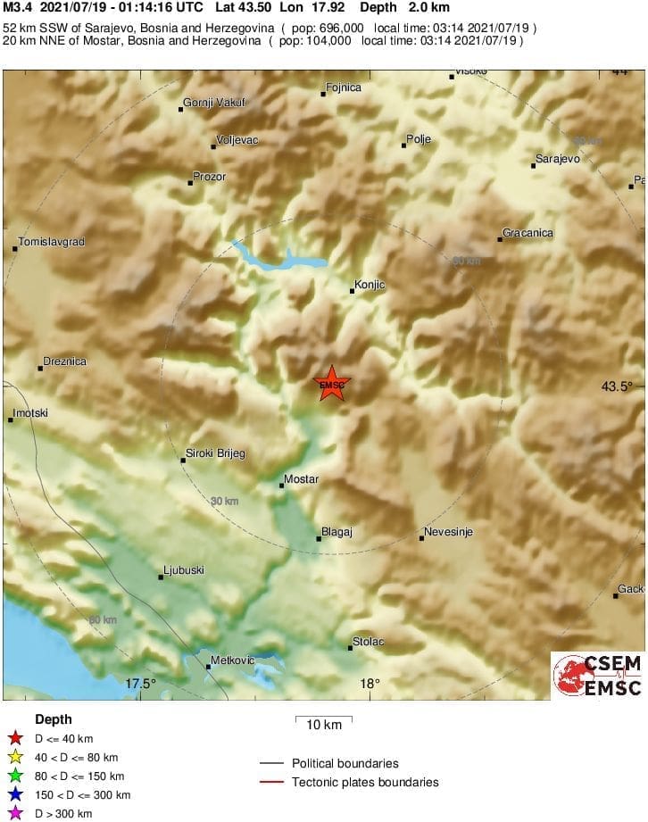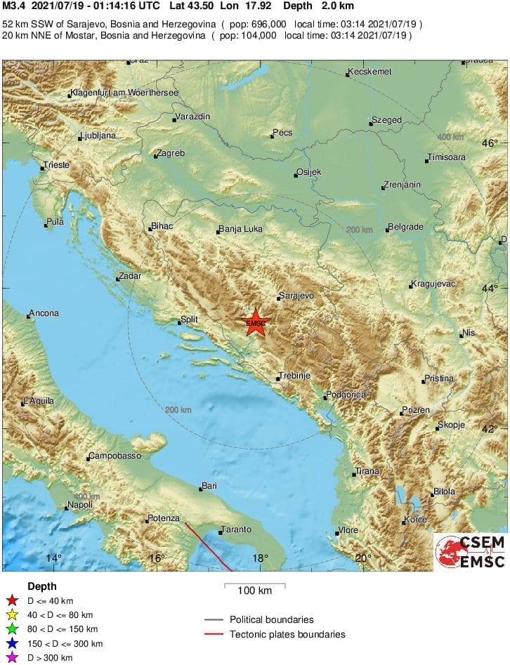 Prema podacima EMSC-a magnituda potresa je iznosila 3.4 prema Richteru, a dogodio se 20 kilometara sjever-sjeveroistočno od Mostara.