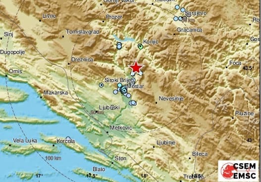 Noćas u 3 sata i 14 minuta umjeren potres dogodio se u dolini Neretve u južnoj Bosni i Hercegovini.