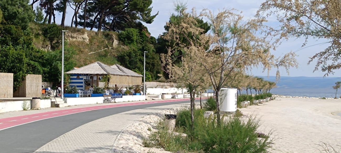 Makar, vrijedi napomenuti da se već danas, zapravo posljednjih skoro godinu dana, može piti kava u istoj toj uvali ispod Trstenika, samo s druge strane uvale, s pogledom na zapad. Tamo od prošlog ljeta posluje Blue bar, modul sa štekatom čiji je vlasnik dobio koncesiju za tu lokaciju.