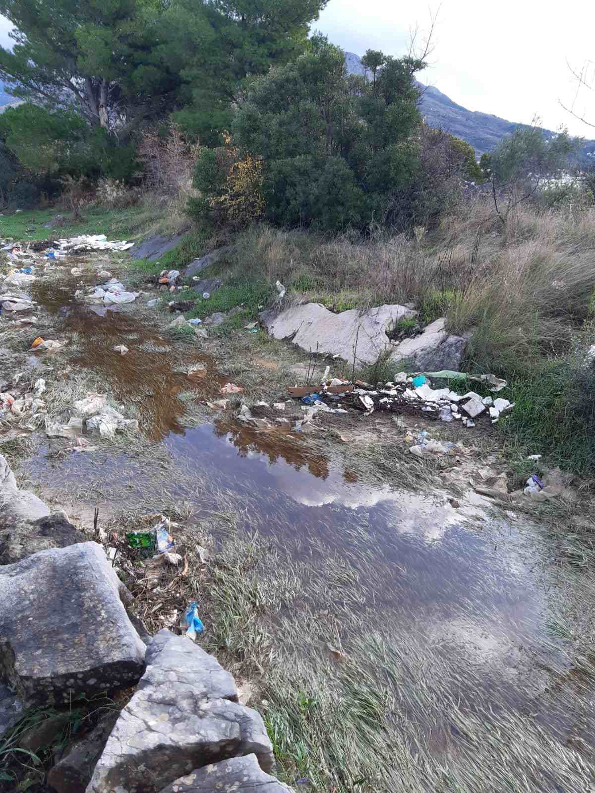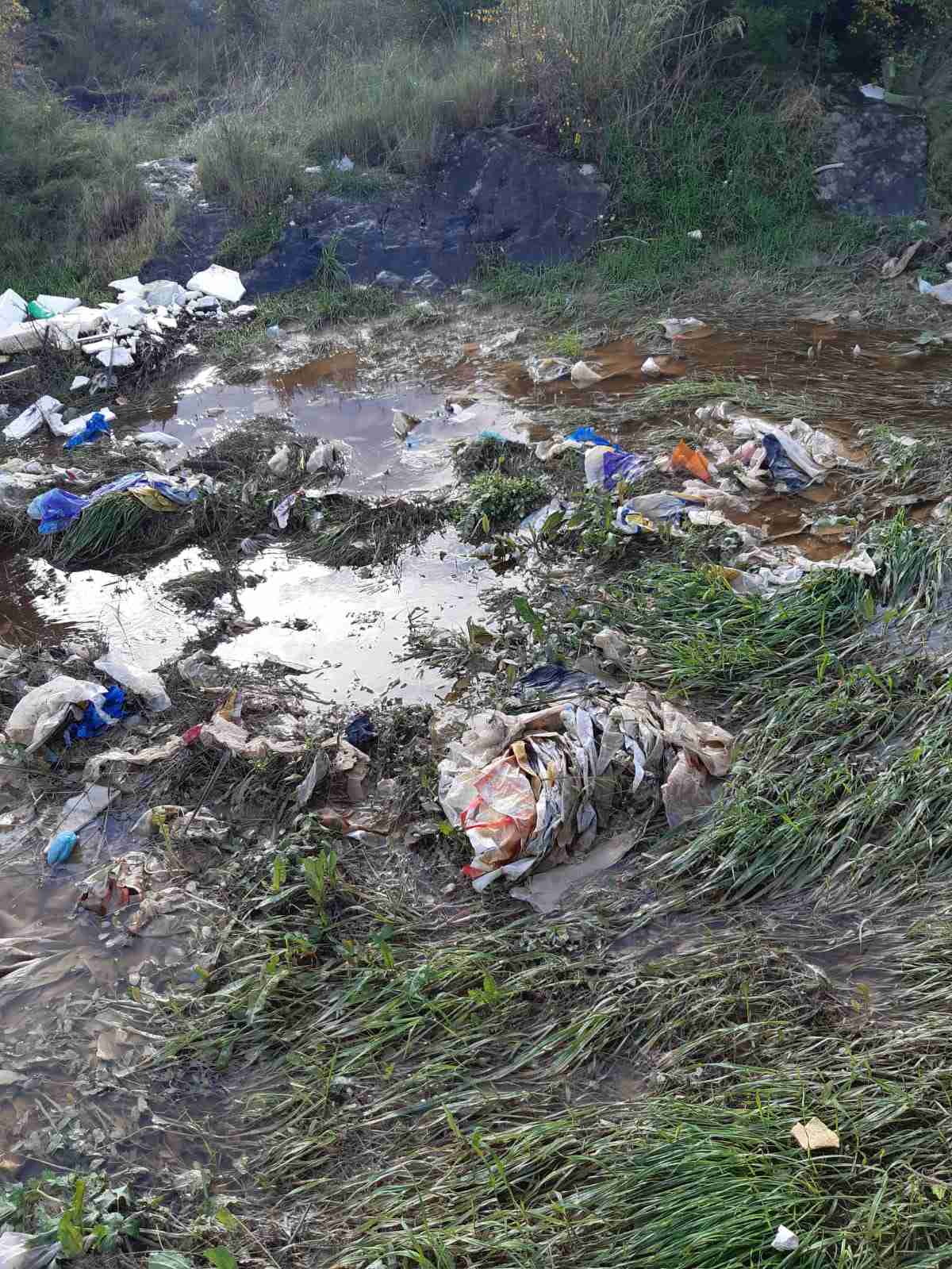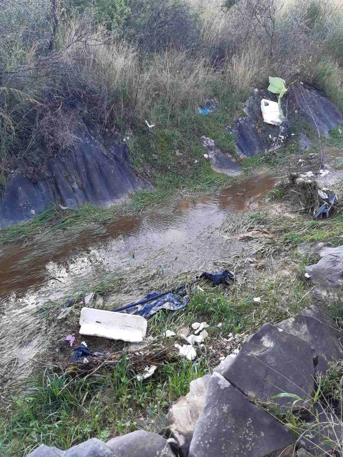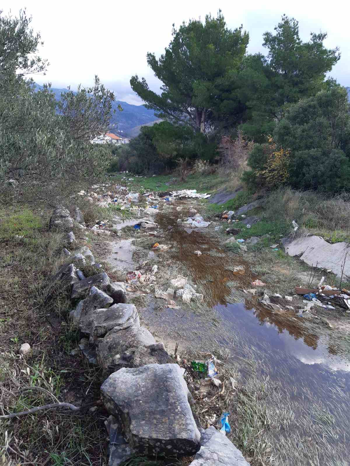 Potok je zatrpan gomilom smeća koje je vjerojatno povukla bujice koju je uzrokovala kiša koja pada posljednjih dana. Potok je tako zatrpan golemom količinom plastične ambalaže i vrećica, ali ima i glomaznog otpada.