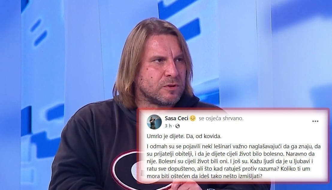 "Umrlo je dijete. Da, od covida. I odmah su se pojavili neki lešinari važno naglašavajući da ga znaju, da su prijatelji obitelji, i da je dijete cijeli život bilo bolesno. Naravno da nije. Bolesni su cijeli život bili oni. I još su. Kažu ljudi da je u ljubavi i ratu sve dopušteno, ali što kad ratuješ protiv razuma? Koliko ti um mora biti oštećen da ideš tako nešto izmišljati?" To je Facebook status poznatog hrvatskog znanstvenika i fizičara Saše Cecija koji se oglasio na medijske napise o smrti 11-godišnjeg dječaka zaraženog koronavirusom, koji ranije nije bio bolestan, a od virusa je bolovao svega 30-tak sati.