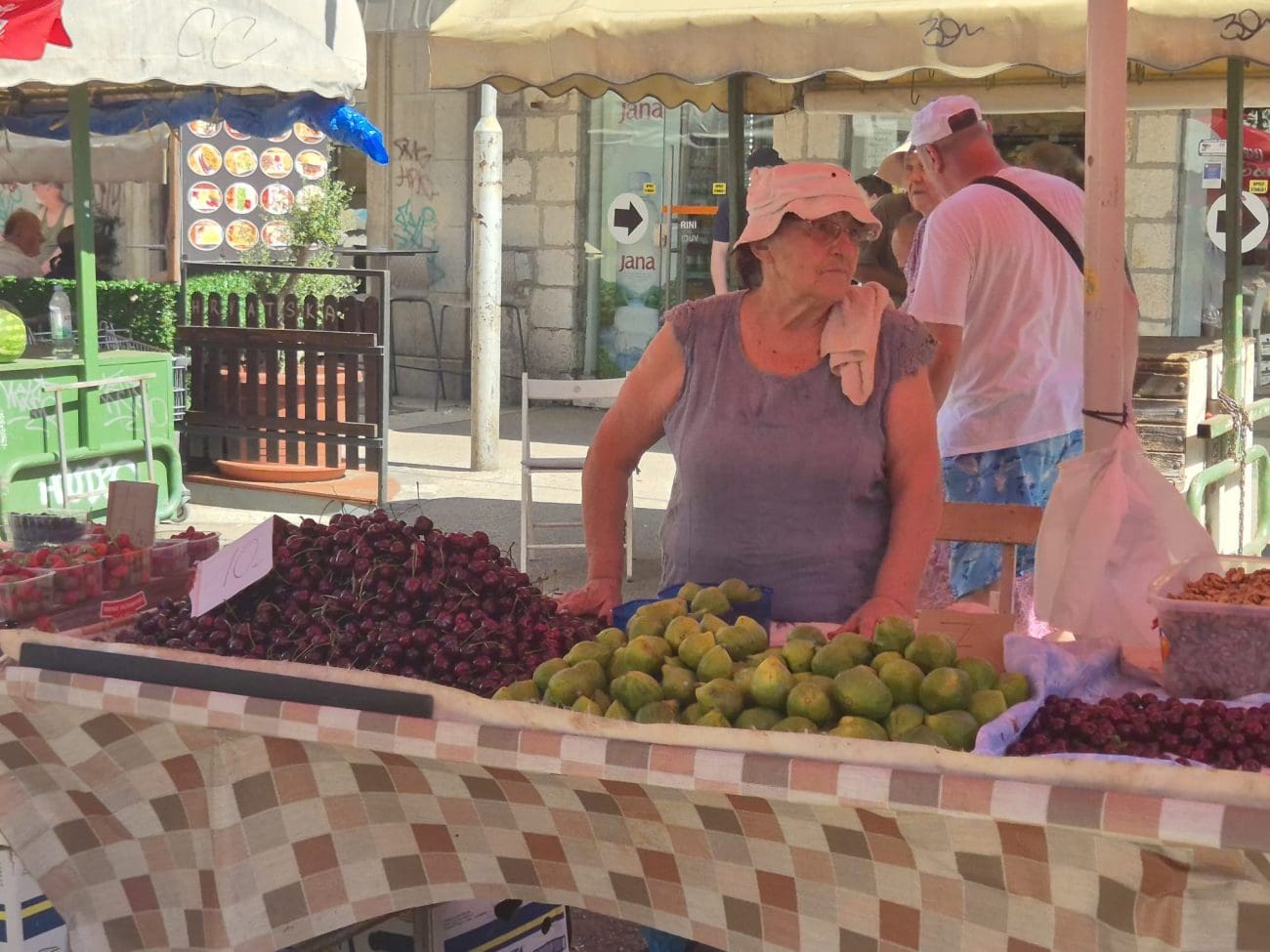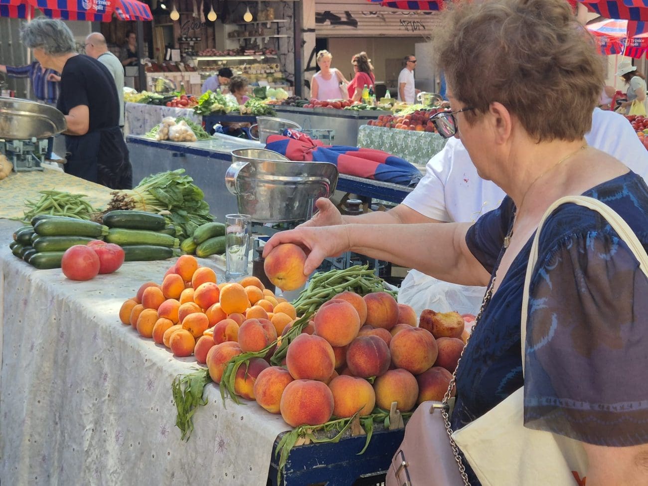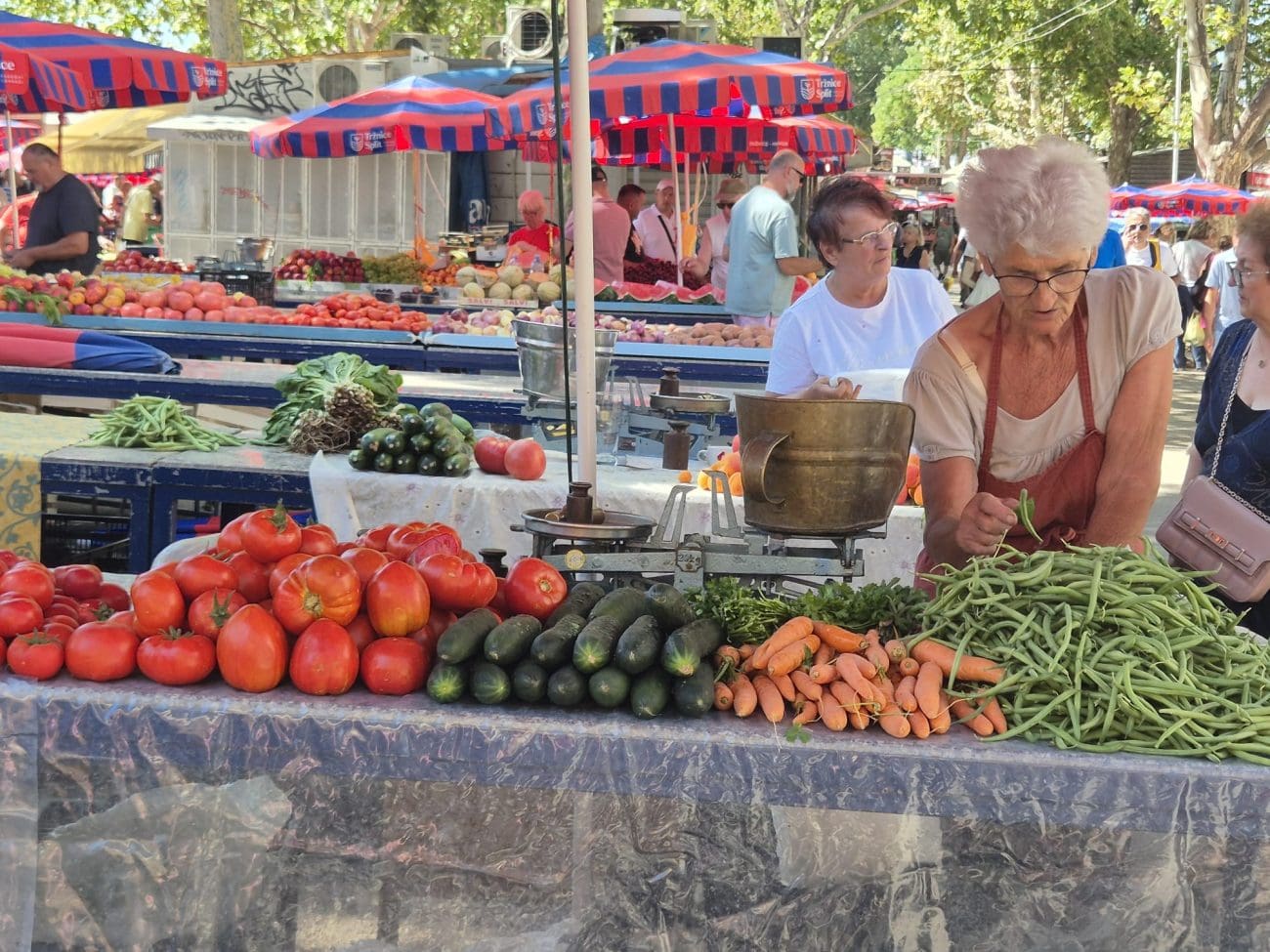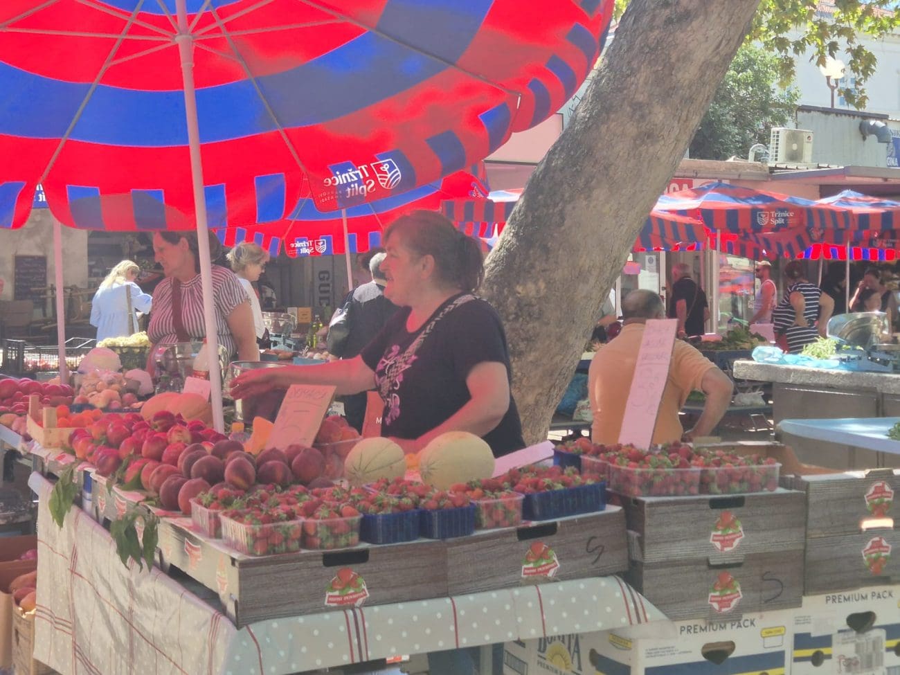 Pazar je i danas prepun, kako domaćima tako i turistima, a bogata je i ponuda. Od domaćih trešanja i jagoda do breskvi i lubenica, može se naći voće za svačiji gušt. Naravno, pitanje je i koliko ste za njih spremni izdvojiti, jer cijene možda neće biti za svačiji džep. Trešanja ima za 5€ ili pak 7€, za breskve ćete dati 4€, a jagode se mogu naći i za 3,50€ pa sve do 7€.