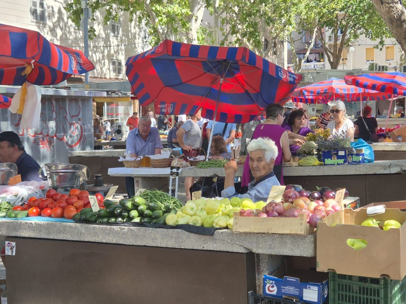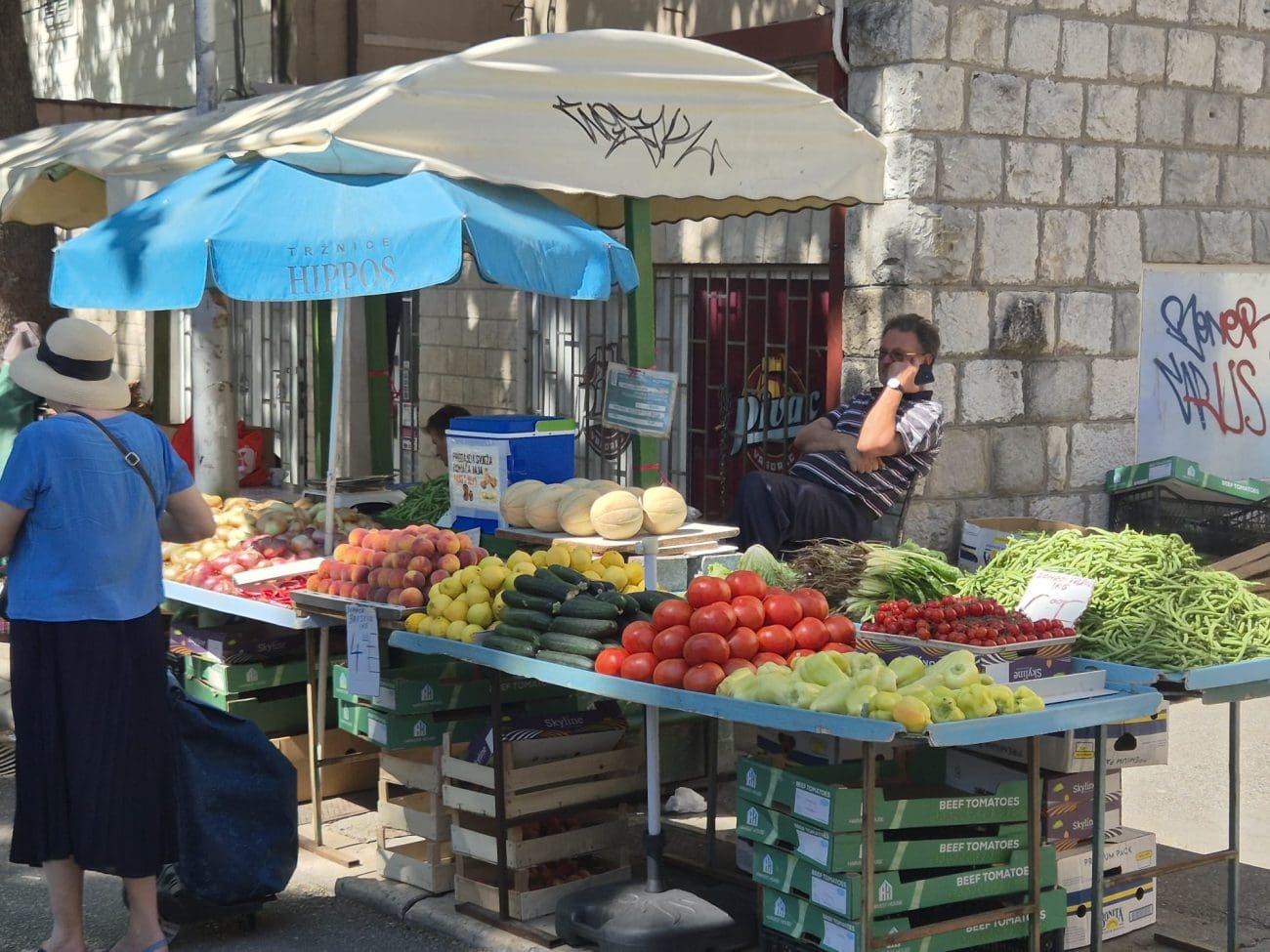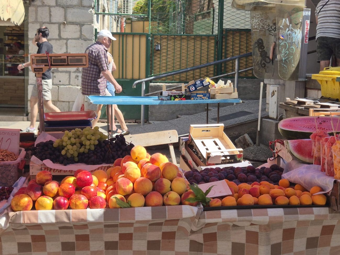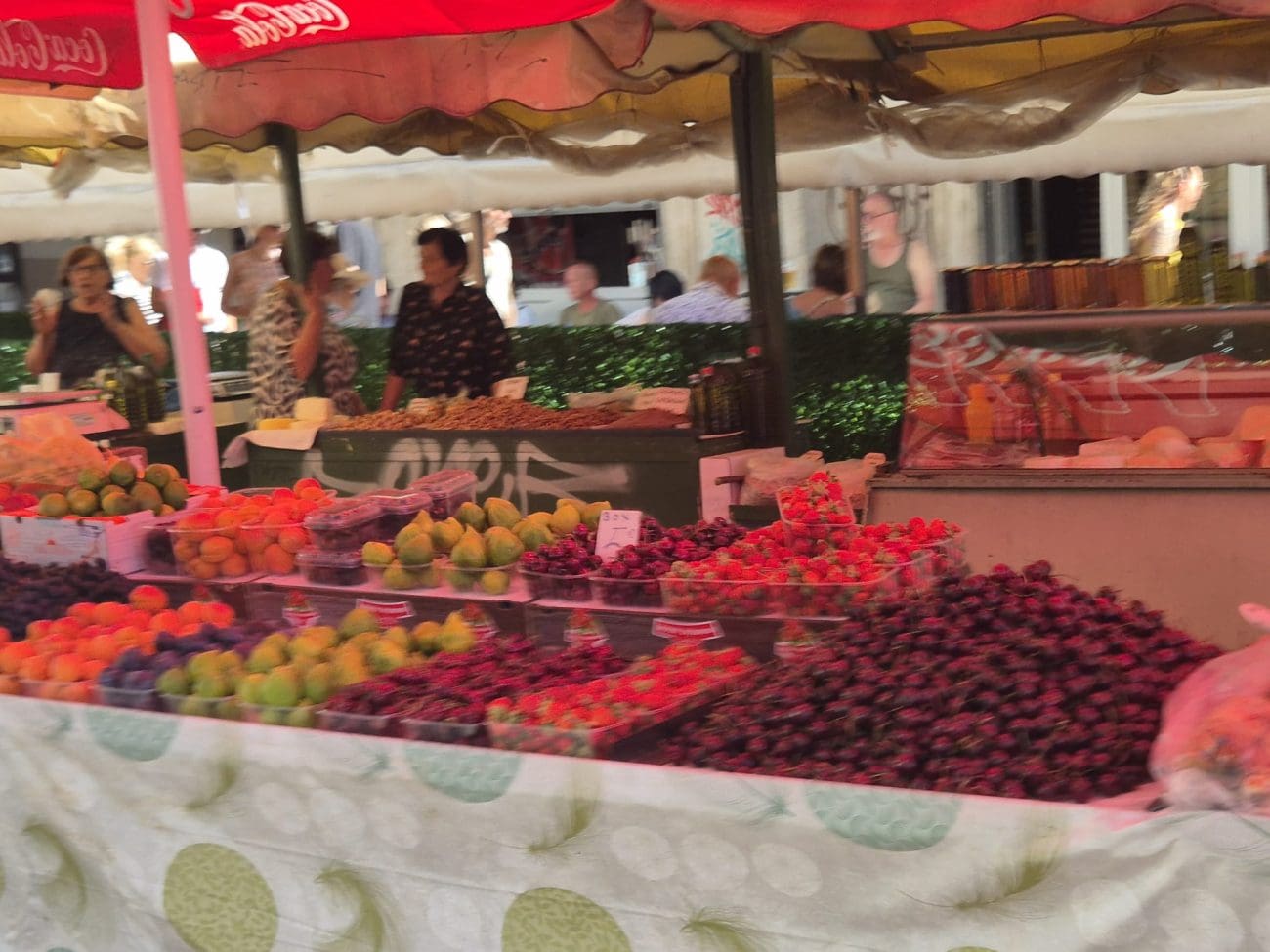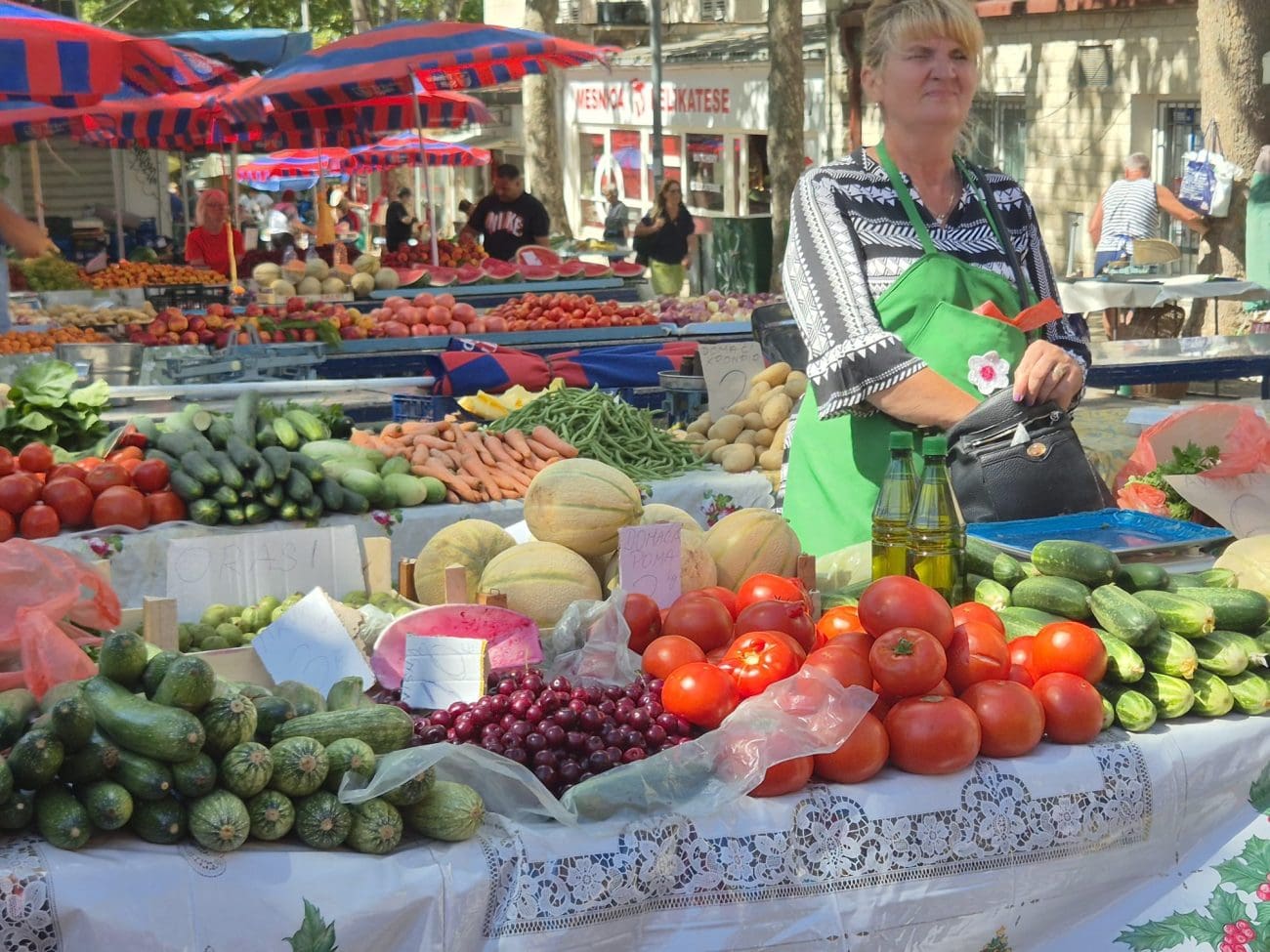 Pazar je i danas prepun, kako domaćima tako i turistima, a bogata je i ponuda. Od domaćih trešanja i jagoda do breskvi i lubenica, može se naći voće za svačiji gušt. Naravno, pitanje je i koliko ste za njih spremni izdvojiti, jer cijene možda neće biti za svačiji džep. Trešanja ima za 5€ ili pak 7€, za breskve ćete dati 4€, a jagode se mogu naći i za 3,50€ pa sve do 7€.