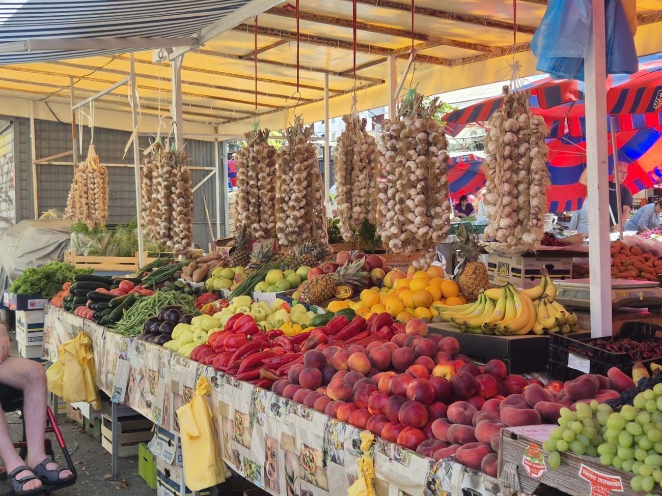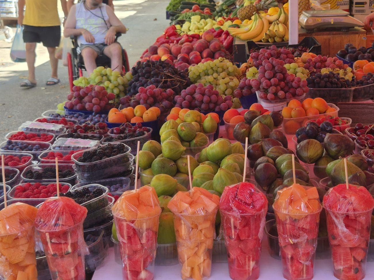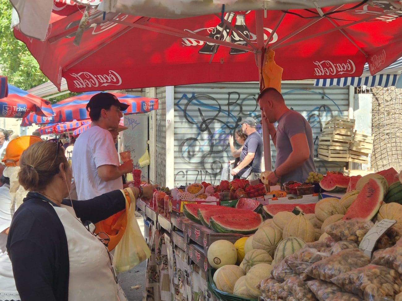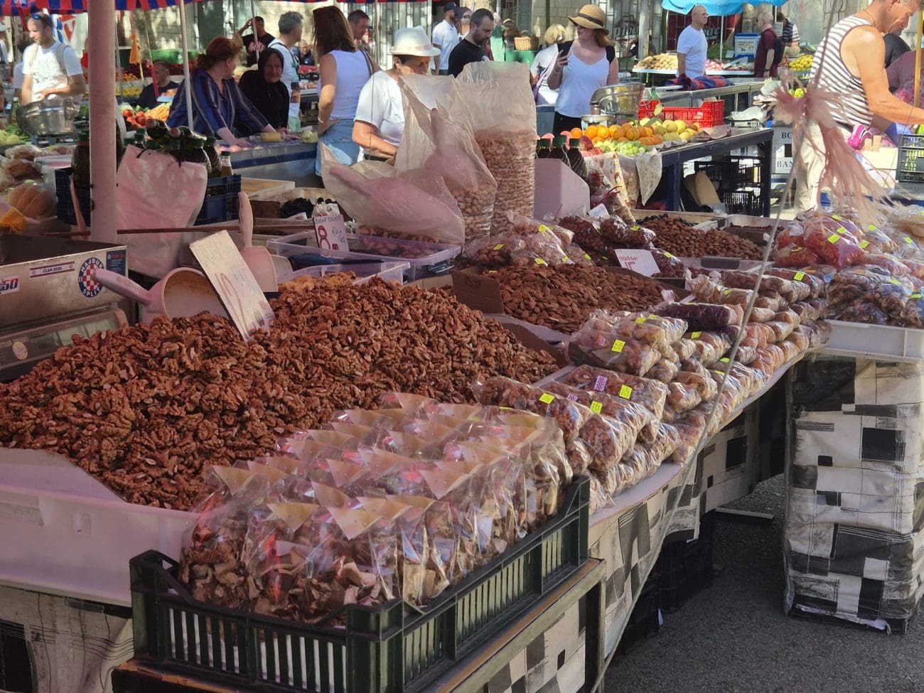 Pazar je i danas prepun, kako domaćima tako i turistima, a bogata je i ponuda. Od domaćih trešanja i jagoda do breskvi i lubenica, može se naći voće za svačiji gušt. Naravno, pitanje je i koliko ste za njih spremni izdvojiti, jer cijene možda neće biti za svačiji džep. Trešanja ima za 5€ ili pak 7€, za breskve ćete dati 4€, a jagode se mogu naći i za 3,50€ pa sve do 7€.