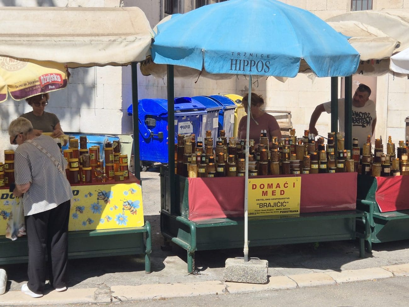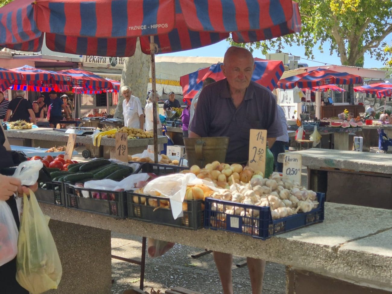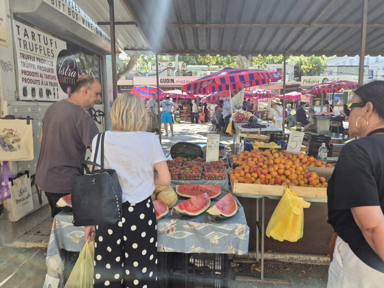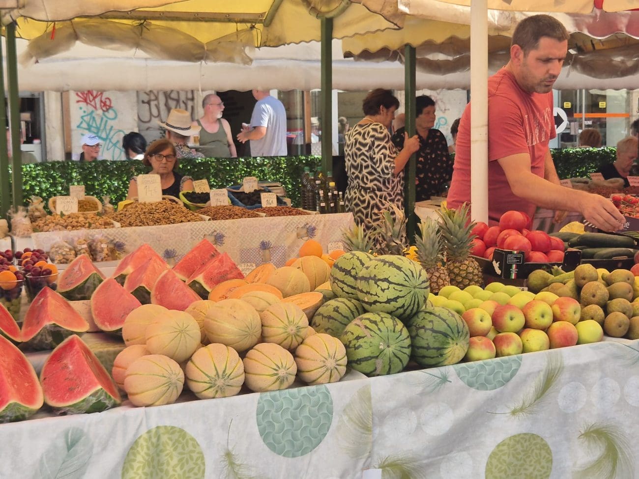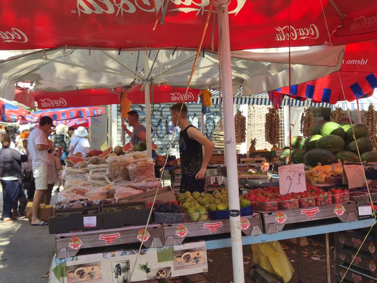 Pazar je i danas prepun, kako domaćima tako i turistima, a bogata je i ponuda. Od domaćih trešanja i jagoda do breskvi i lubenica, može se naći voće za svačiji gušt. Naravno, pitanje je i koliko ste za njih spremni izdvojiti, jer cijene možda neće biti za svačiji džep. Trešanja ima za 5€ ili pak 7€, za breskve ćete dati 4€, a jagode se mogu naći i za 3,50€ pa sve do 7€.
