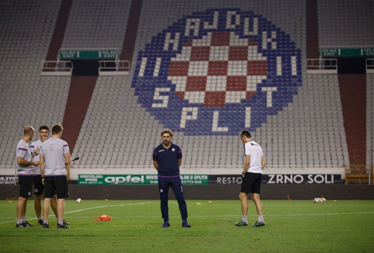 Točno kako je i predviđeno, 60 minuta trajao je službeni trening hajdukovaca uoči novog europskog ogleda protiv rumunjske momčadi FCSB. Po dvadeset minuta brojni predstavnici rumunjskih (njih 15) i hrvatskih medija postavljali su pitanja trenerima vezana uz susret i stanje u jednoj i drugoj momčadi prije početnog sučevog zvižduka.