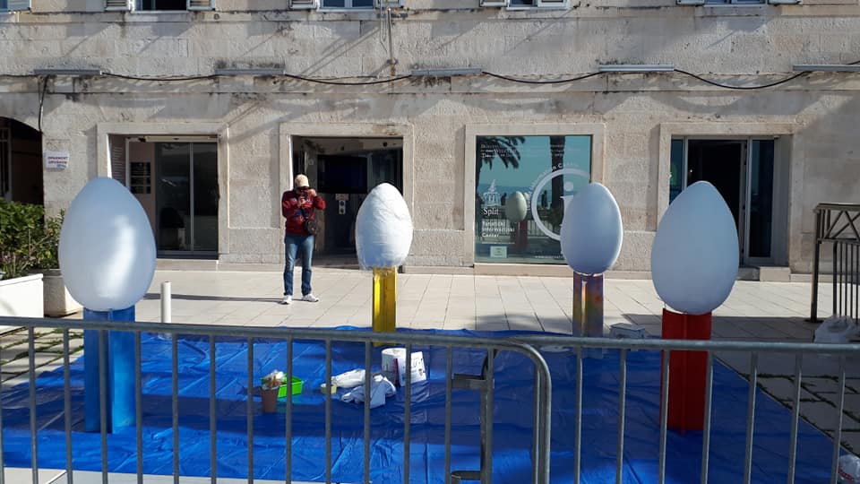 Turistička zajednica grada Splita u suradnji s članovima Braniteljske likovne udruge i štićenicima centra Juraj Bonači na Rivi su, uoči Uskrsa, izložili četiri pisanice koje će se oslikavati.