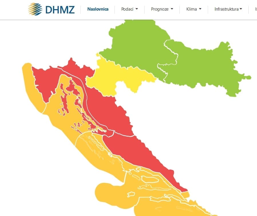 Nakon što je Državni hidrometeorološki zavod jučer izdao posebno priopćenje vezano uz vremenske neprilike koje se na Jadranu i područjima uz Jadran očekuje sljedećih dana, danas je su prva službena upozorenja krenula unutar sustava MeteoAlarm.