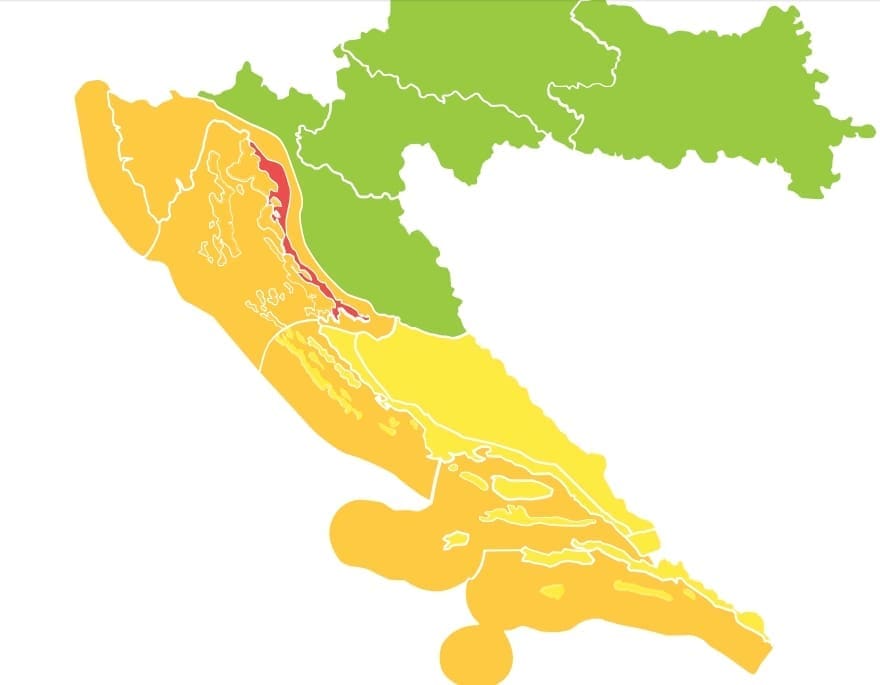 DHMZ je unutar sustava MeteoAlarm za ponedjeljak za različite zone Jadrana dao razne stupnjeve upozorenja na buru - od žutog do crvenog!