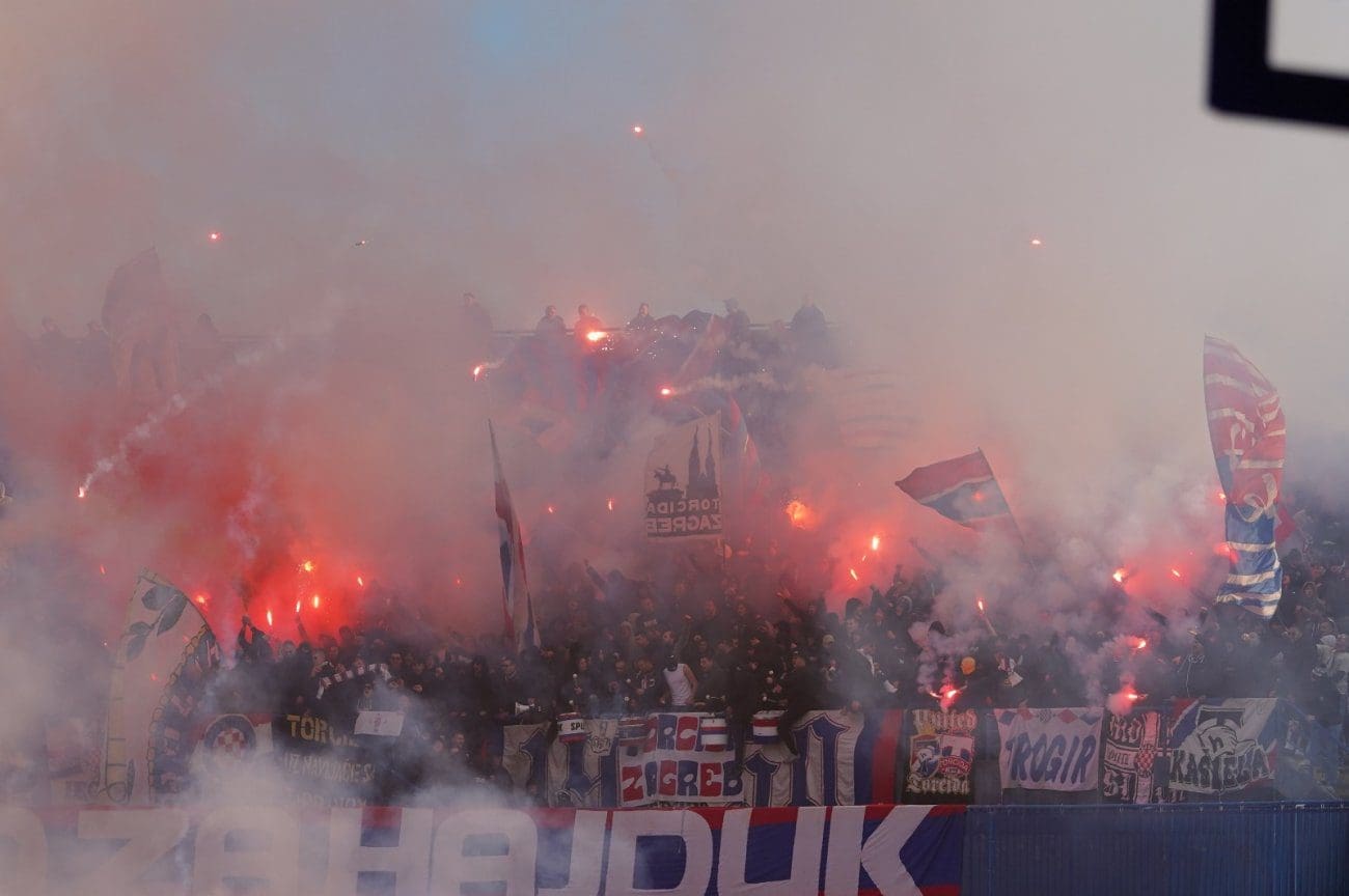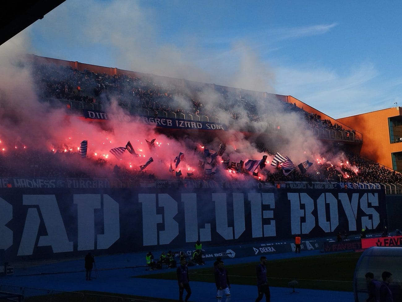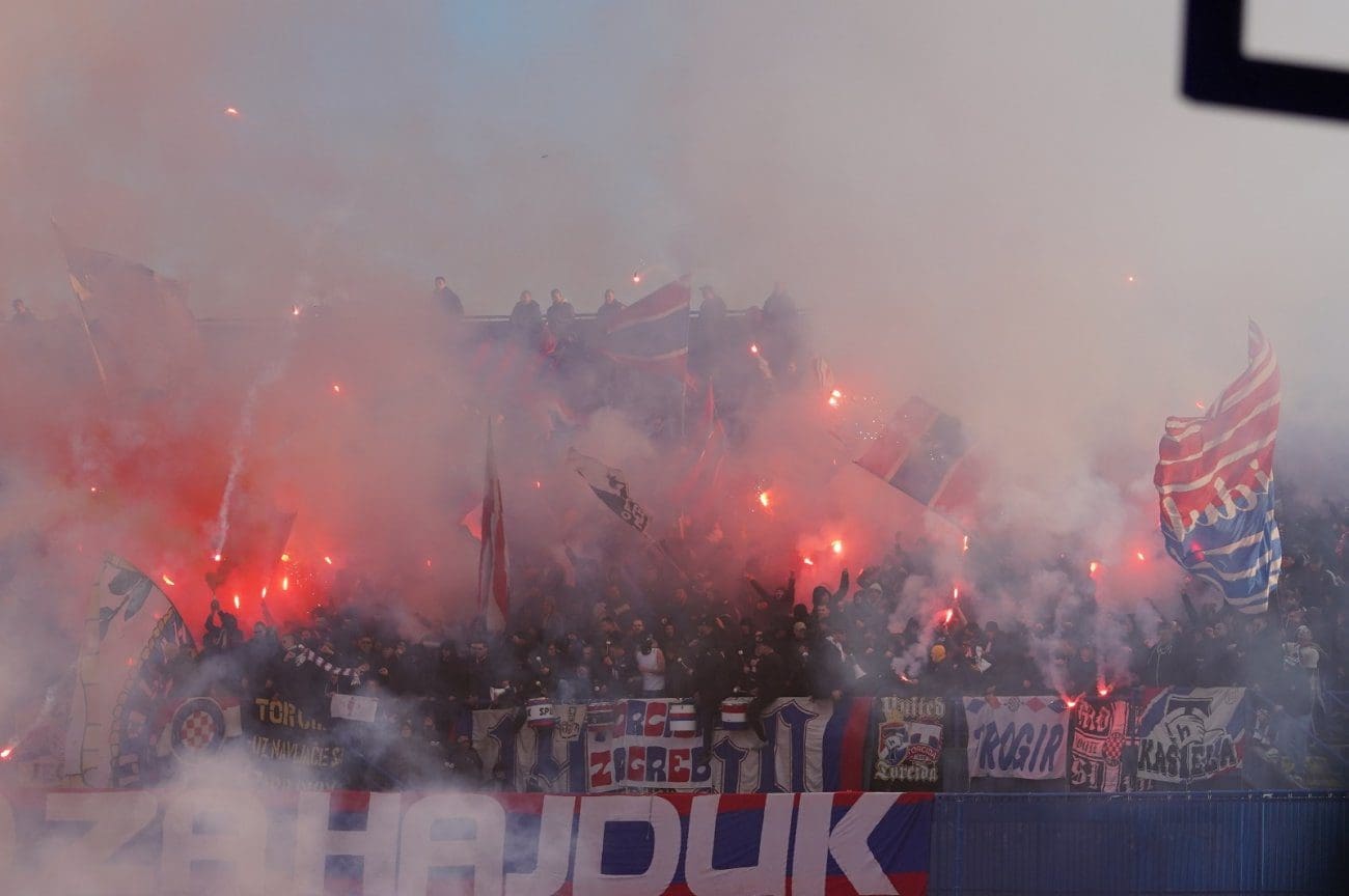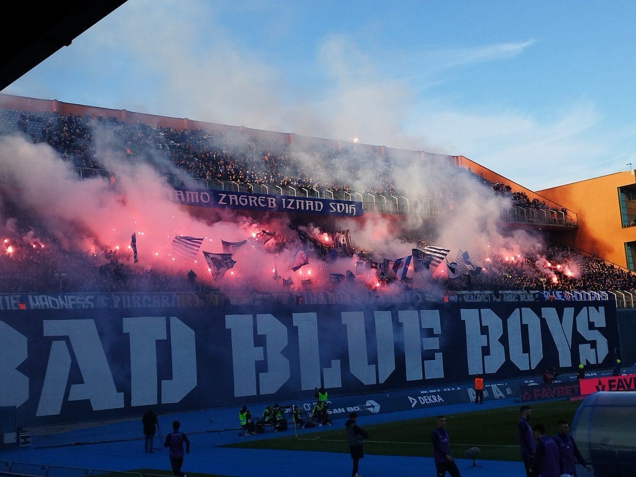 U 63. minuti Torcida je istaknula poruku: "JEBEMO VAM MATER 1254 PUTA SKUPA SANJIN / ZAGREB MENTALITET". Sanjin i grafemi AGENT iz Zagreb mentalitet bili su napisani plavom, aludirajući na Sanjina Strukića koji je, ustaljenom frazom od navijača postao agent.