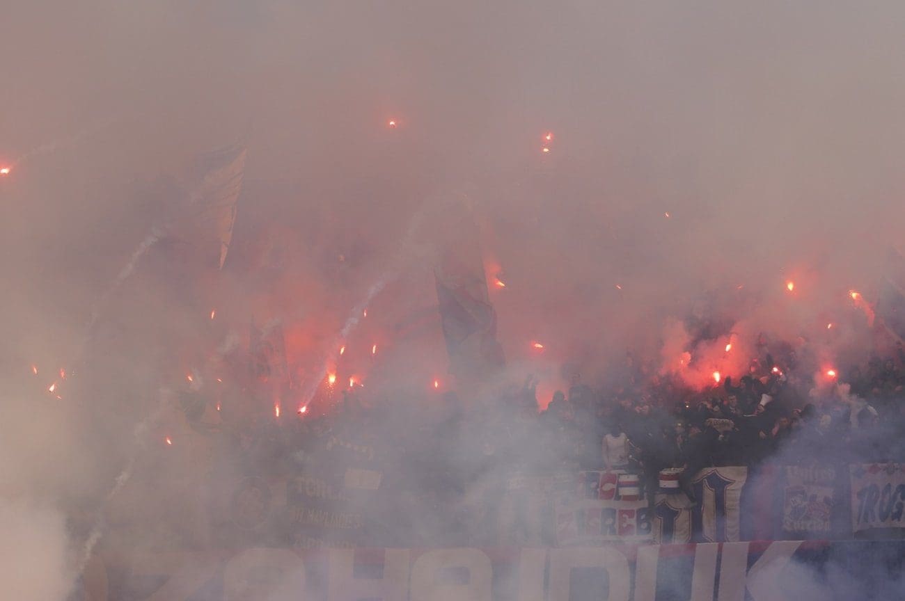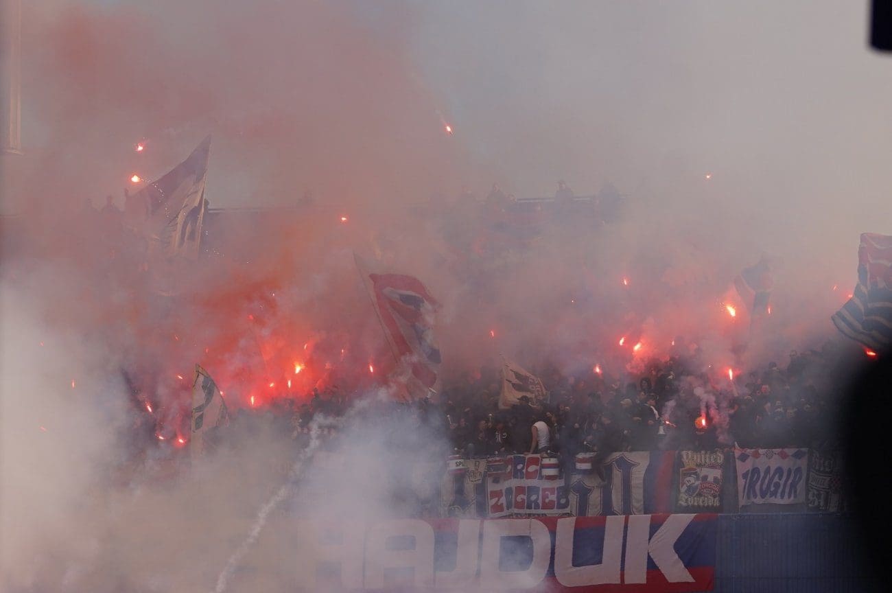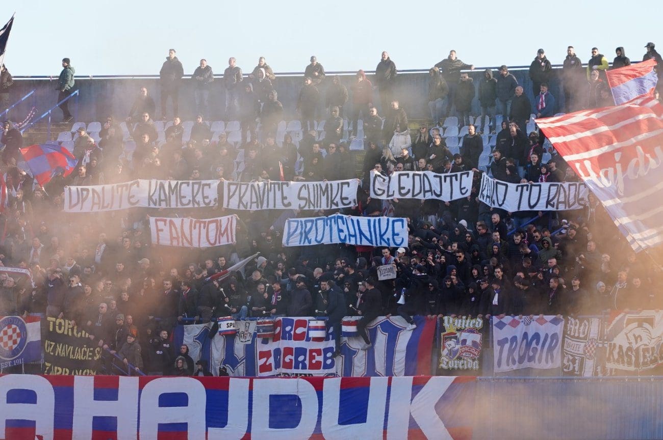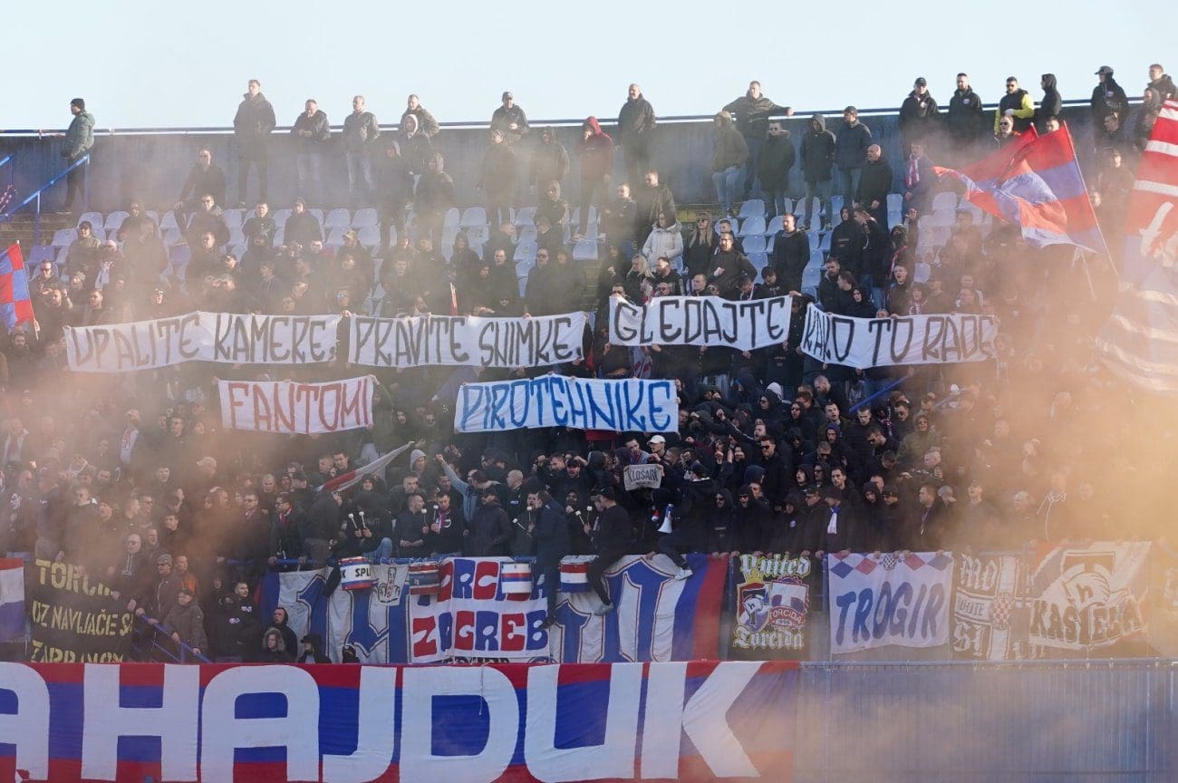 U 73. minuti, nakon bakljade BBB-a, Torcida je podignula poruku: "UPALITE KAMERE, PRAVITE SNIMKE, GLEDAJTE KAKO TO RADE / FANTOMI PIROTEHNIKE".