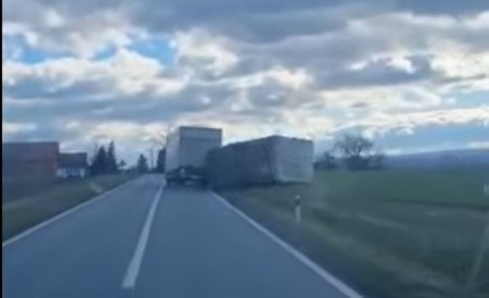 Kako javlja portal SiB.hr, olujni vjetar danas je prevrnuo kamion na cesti Kula-Kutjevo. Čitatelj im je poslao snimku na kojoj se vidi kako vjetar prevrće prikolicu kamiona, koja je potom za sobom povukla i kamion.