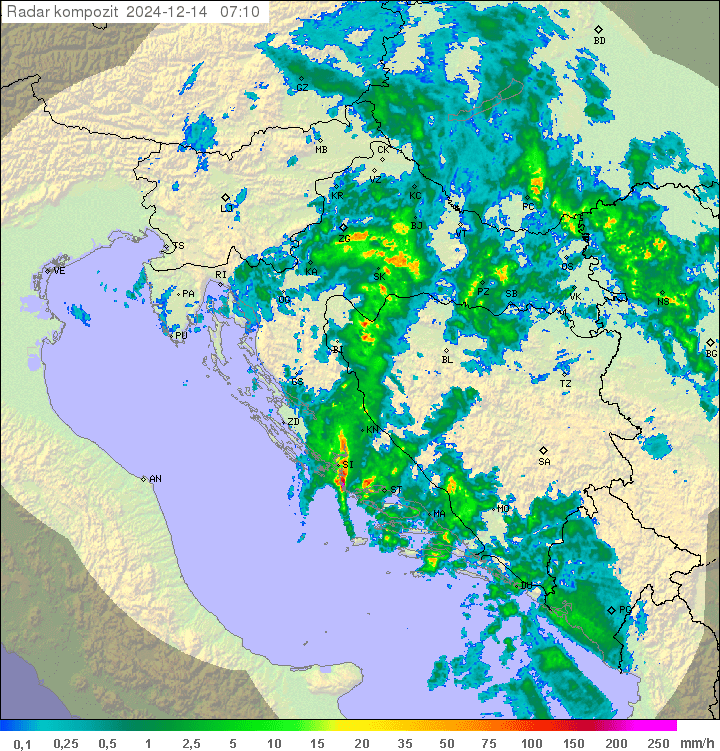 U većem dijelu Dalmacije subota je osvanula uz pretežno oblačno vrijeme uz povremenu kišu, a ponegdje ima i izraženijih pljuskova s grmljavinom. Puše većinom umjereno do jako jugo. Minimalne temperature kretale su se od 2 do 7°C u Zagori, te od 8 do 13°C na obali i otocima.