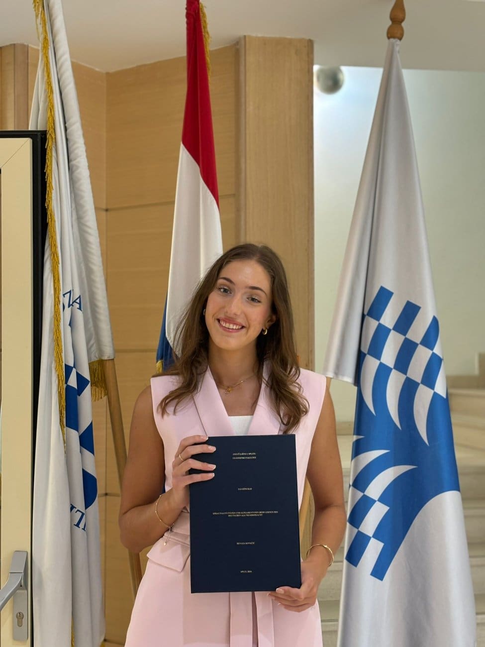 Osim prosjeka ocjena imala je dodatne bodove i iz državnog sveučilišnog natjecanja u plivanju jer je u Vukovaru u ukupnoj kategoriji Sveučilišta Split sa ženskom ekipom osvojila drugo mjesto, te sama dva prva i jedno treće mjesto. Obožava jezike, njemački posebno.