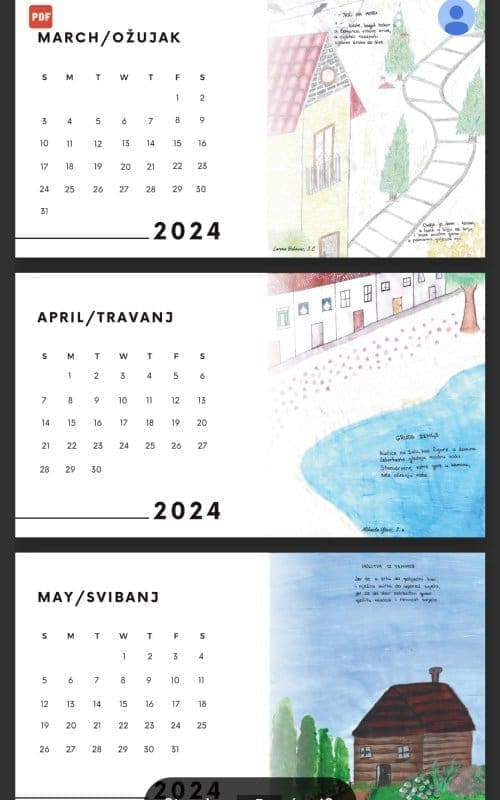 „Prije nekoliko dana, završili smo školski projekt koji je uvršten u kurikulum. To je bio multidisciplinarni projekt, a zadatak učenika je bio izraditi likovne uratke na temelju stihova Tina Ujevića i te iste stihove ilustrirati. Od tih ilustracija smo ostvarili konačan proizvod – kalendar.