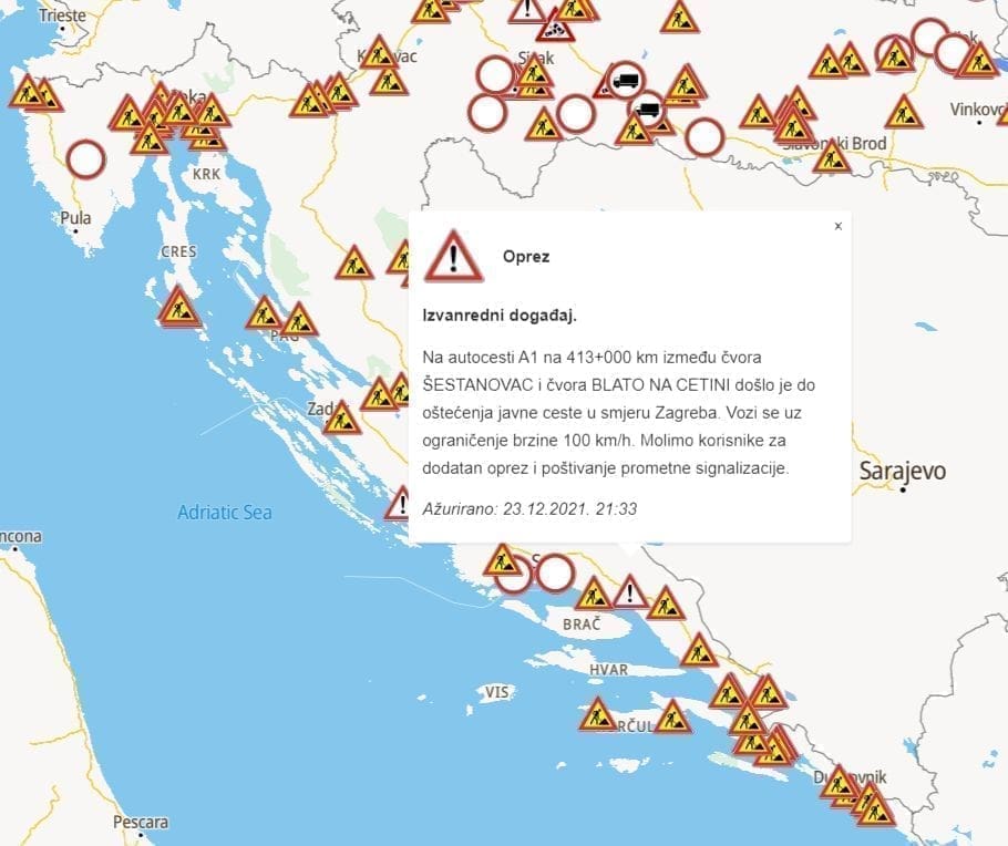 Na izvanredan događaj na Dalmatini kroz Zagoru upozorili su prije nekoliko minuta iz Hrvatskog autokluba.