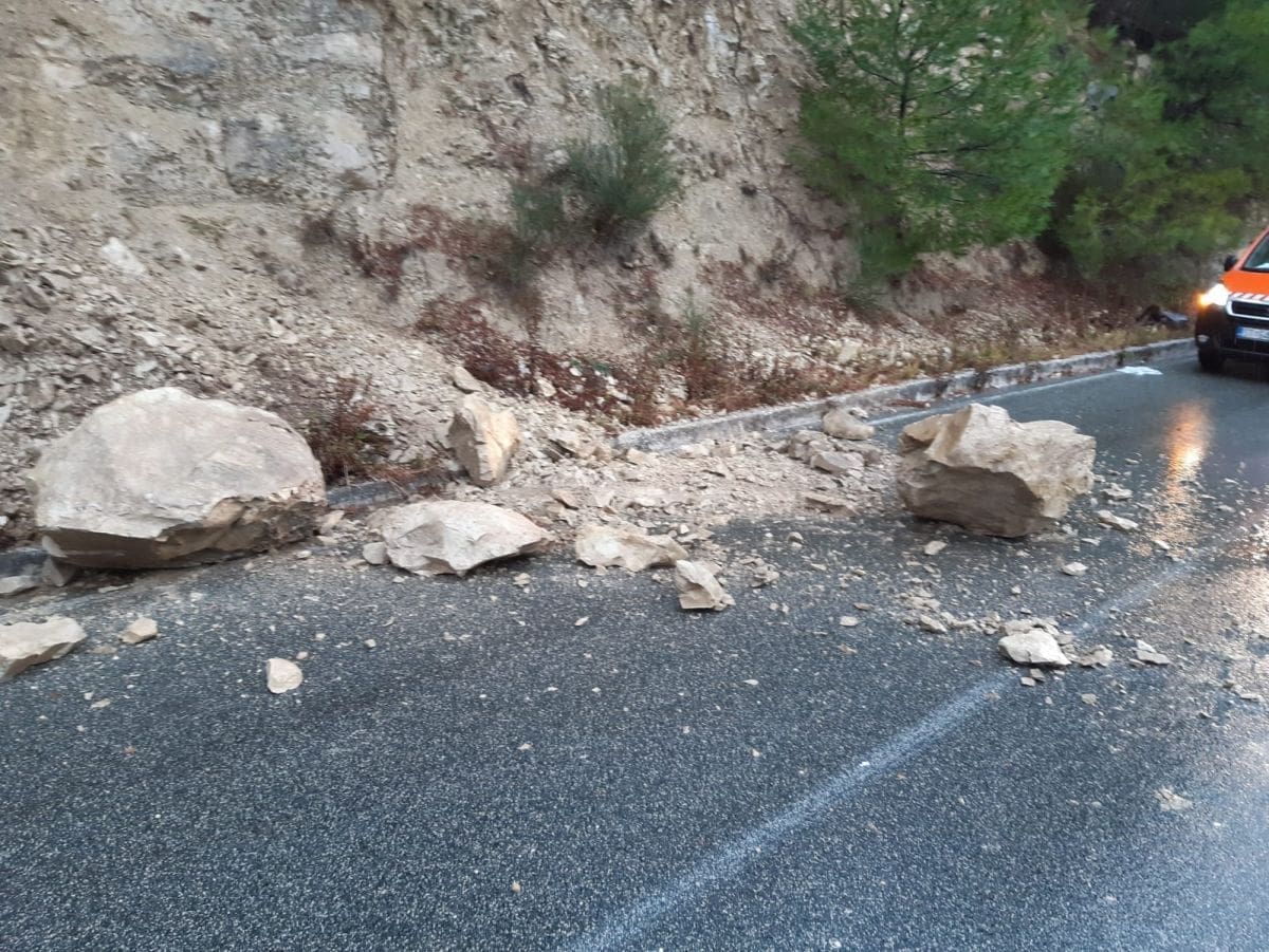 Zbog velike količine kiše jutros je na putu prema Malačkoj došlo do odrona kamenja, koje je završilo na prometnici.