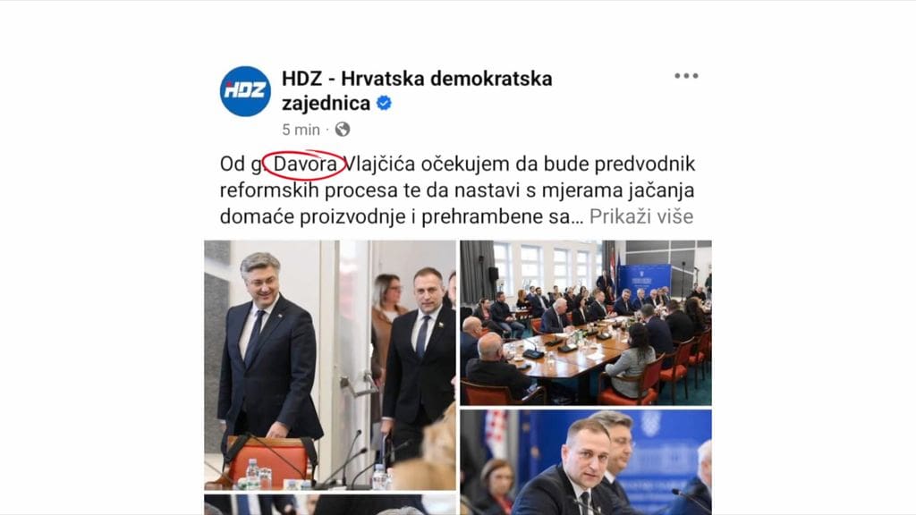 O sjednici se oglasio i HDZ, na čijem je službenom profilu na Facebooku objavljena Plenkovićeva izjava, ali uz jednu grešku.