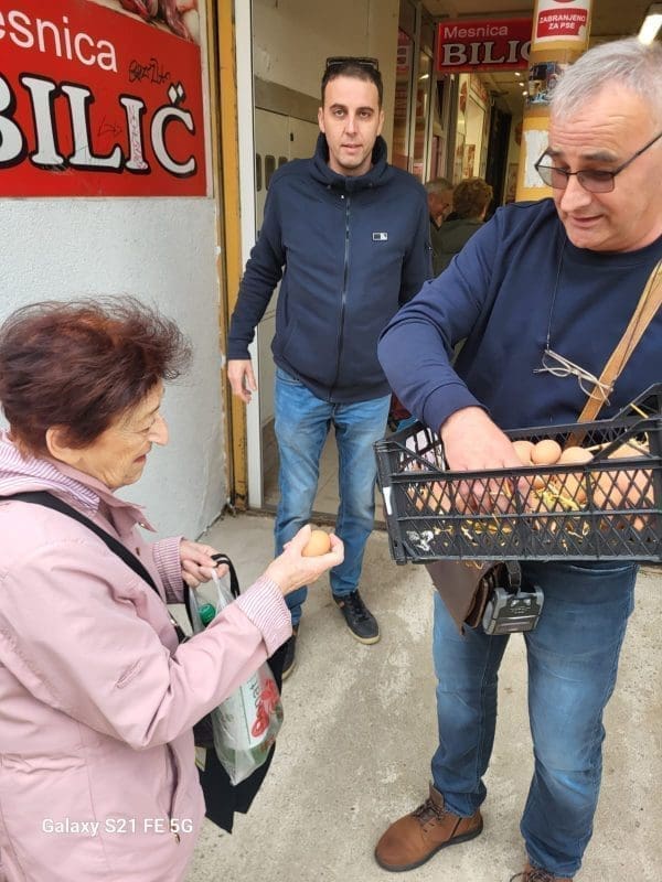 "Lijepa gesta za nas umirovljenike. I jedno jaje je puno", kazao je gospodin koji je došao po namirnice na pazarić.