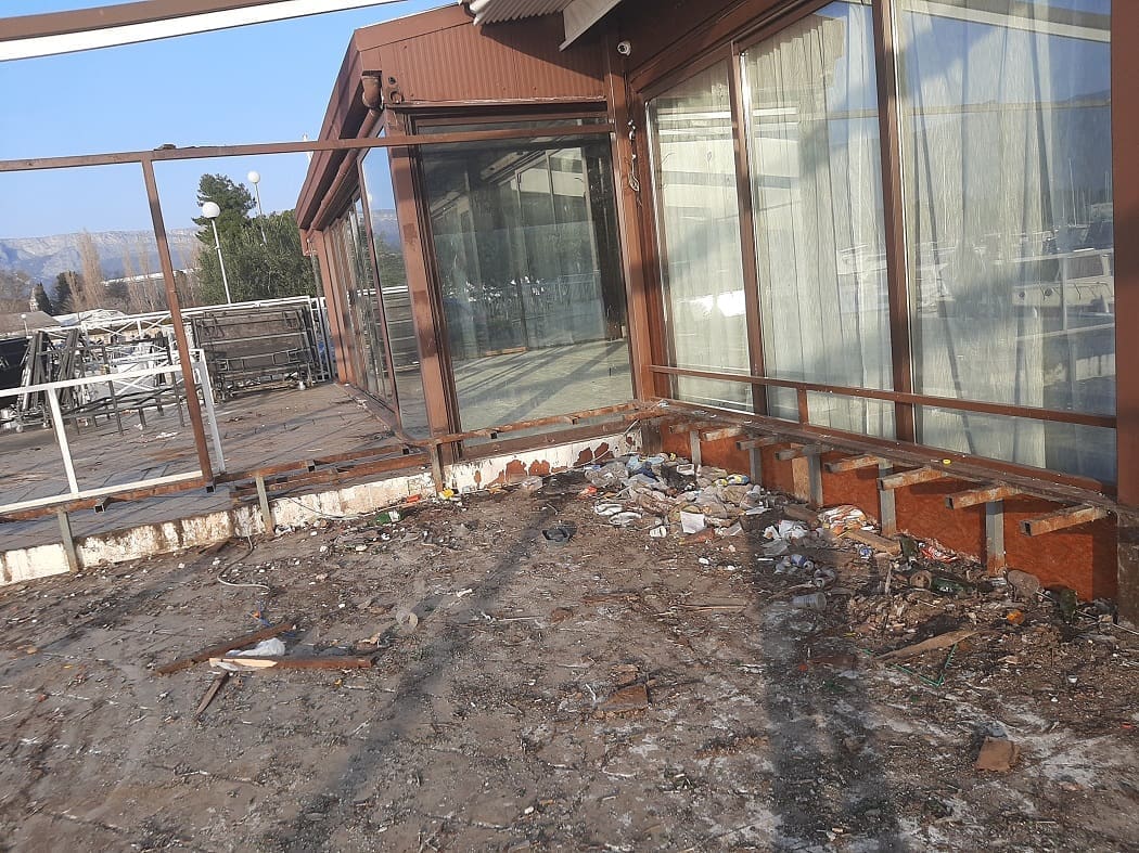 Na ulazu u splitsku lučicu Mornar, tik uz šetnicu kojom ovih dana prolazi dosta ljudi, nalazi se zatvoreni objekt bivše popularne diskoteke Hemingway, s polusrušenim štekatom koji sada svima "bode oči".