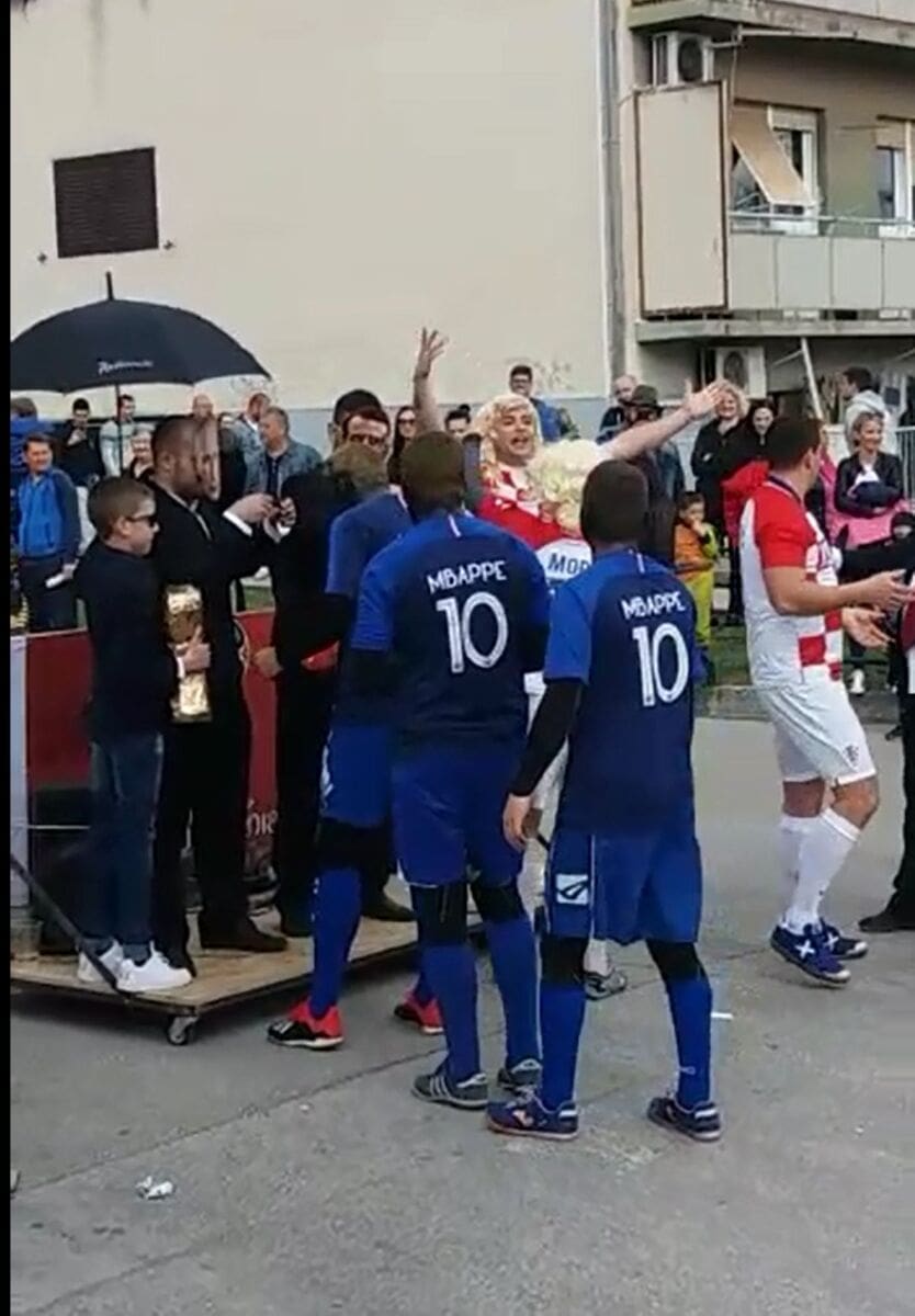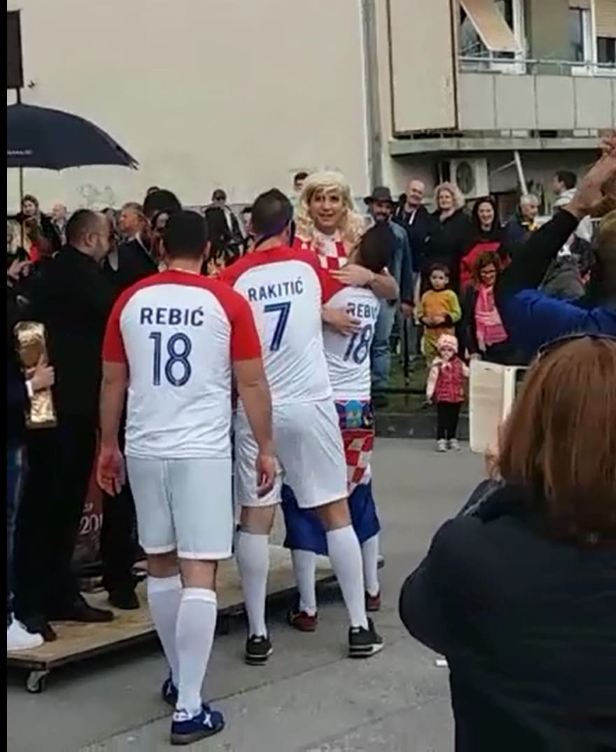 Da bi dojam bio autentičniji, bila je tu i "predsjednica" RH koja je oduševljeno grlila svakog nogometaša pojedinačno.