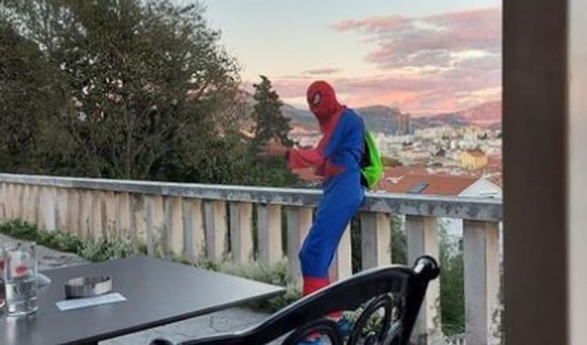 Očito je da ljudi ne reagiraju jednako na krizu. Ova osoba se zamaskirala u Spidermana te je time privukla pažnju posjetitelja splitske vidilice na Marjanu.