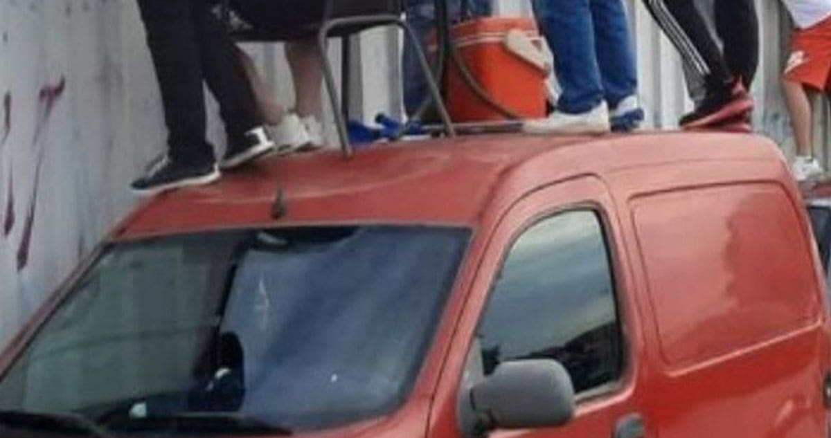 Skupina mladića, ipak se snašla i pronašla je svoju 'ložu' i dobar pogled na utakmicu.