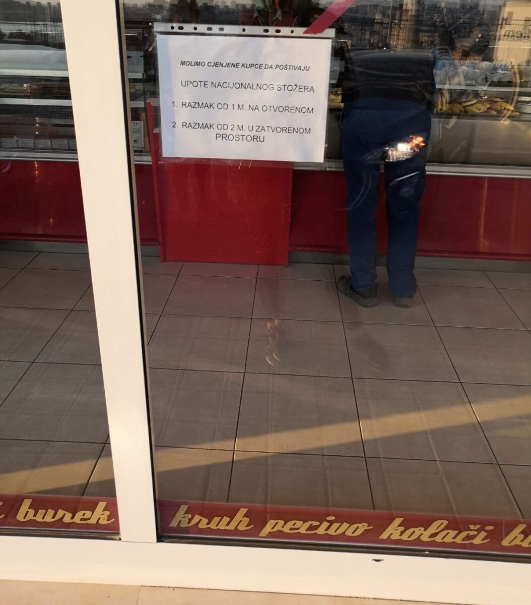 2. RAZMAK OD 2 M. U ZATVORENOM PROSTORU" - stoji na obavijesti koja je, bez obzira na ozbiljan sadržaj, nasmijala kupce.