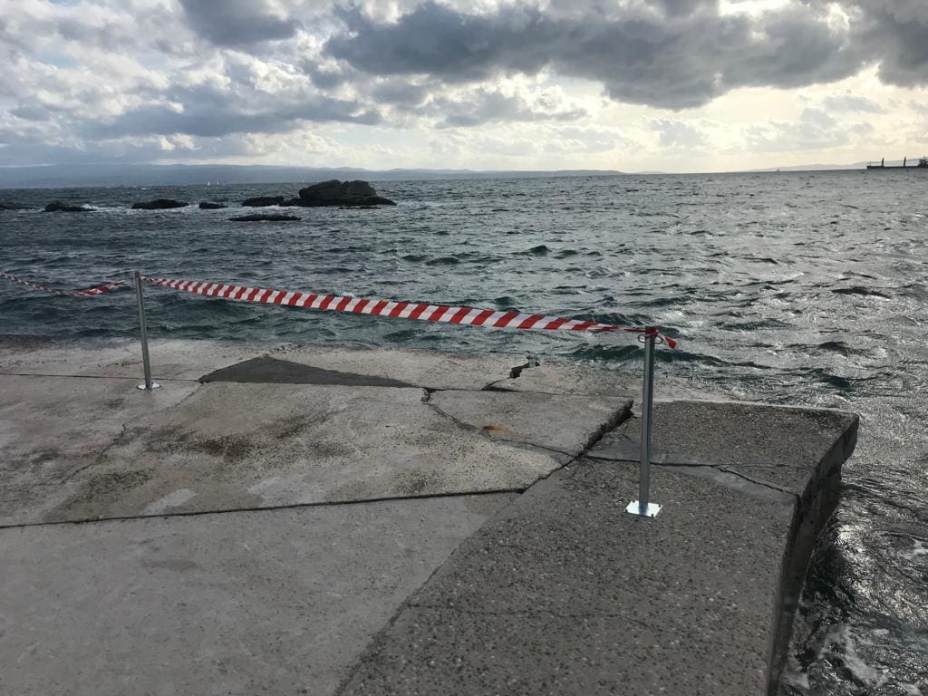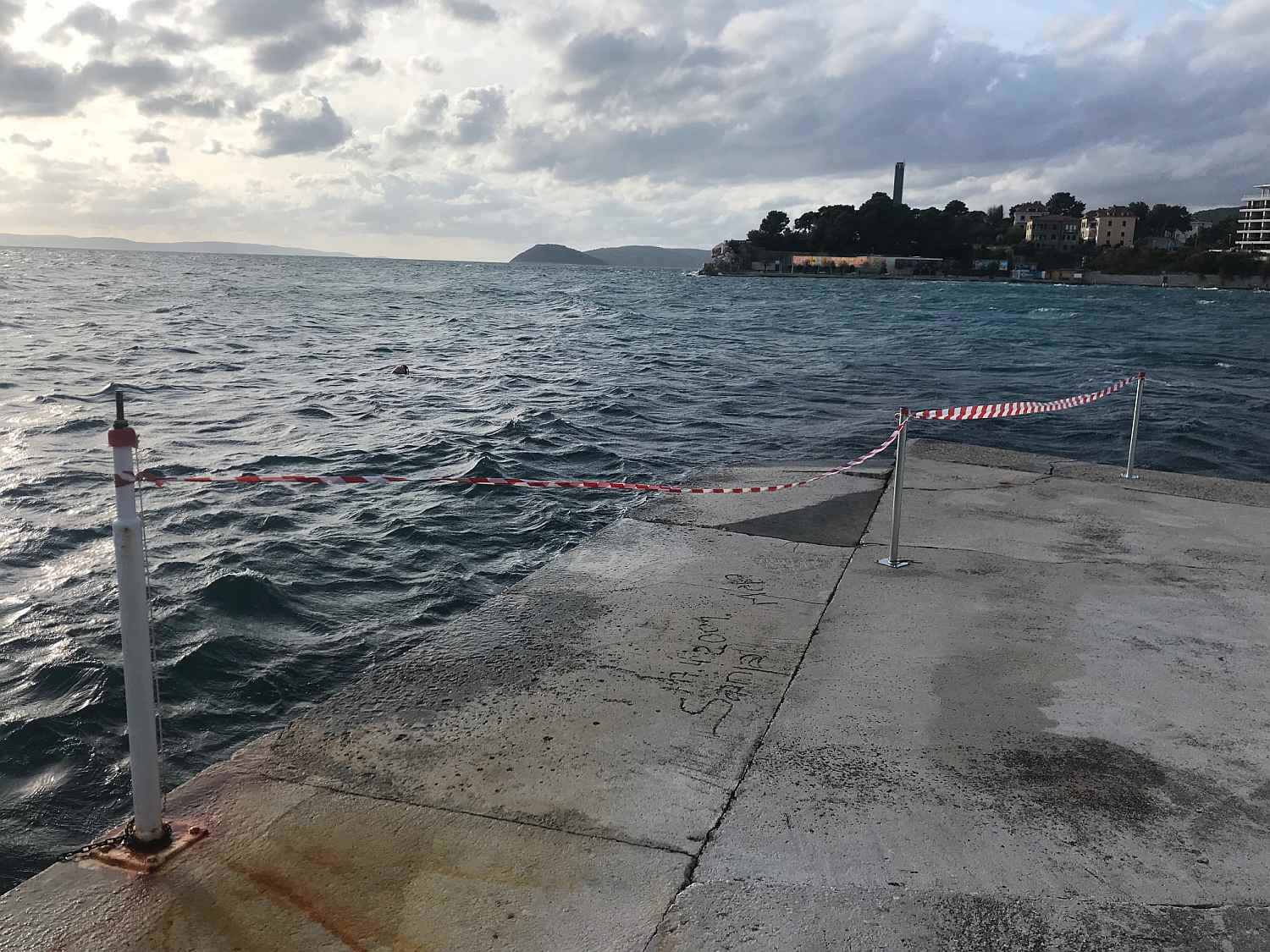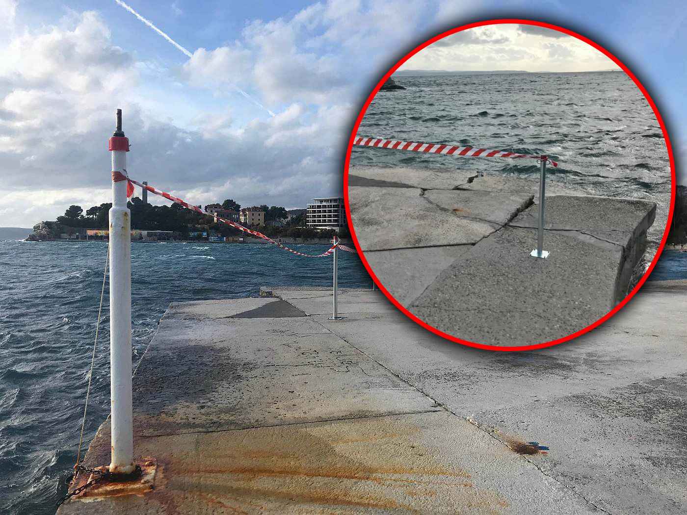 Nova opasnost za Splićane sklone romantici i šetanju uz more: dio betonske obale na Bačvicama popustio je pod naletima mora nošenog jugom! Srećom, “propao” je dio koji nije najprometniji, na samom jugoistočnom dijelu najpoznatije splitske plaže. Postoji opasnost da se puknuće betonskih blokova proširi, a prolaznici su zasad “upozoreni” s nekoliko stupića i trakom.