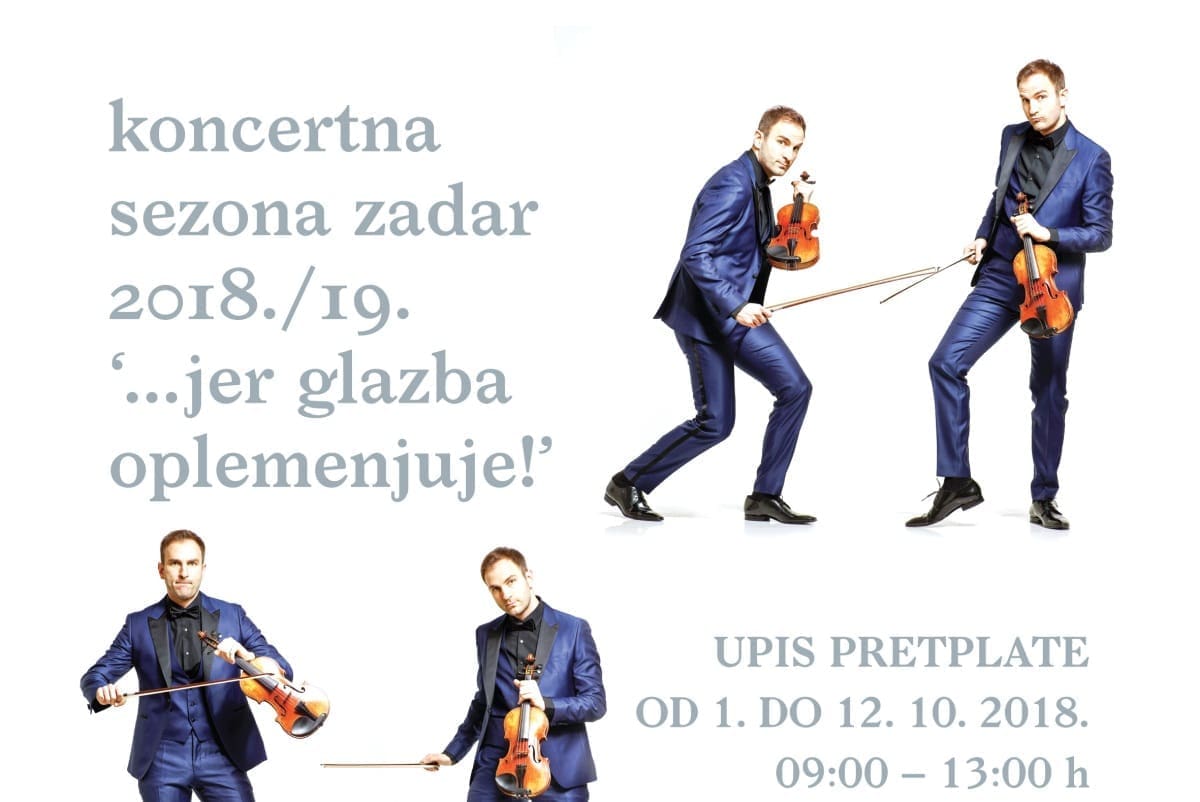 Upis pretplate obavlja se u Koncertnom uredu Zadar / Poljana Šime Budinića 3 / 23000 Zadar Kneževa palača, I. Kat od 9 do 13 sati.