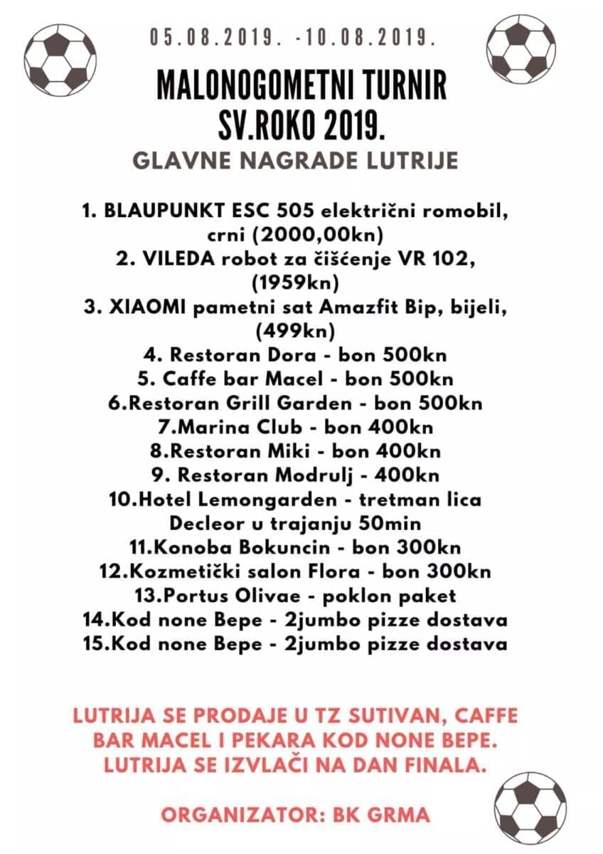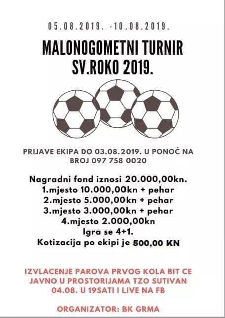 U Sutivanu na Braču organizira se malonogometni turnir "Sveti Roko 2019".
