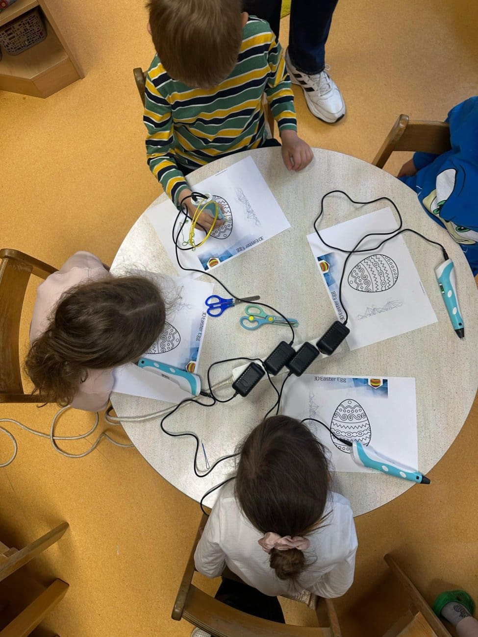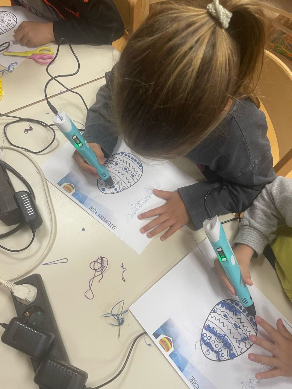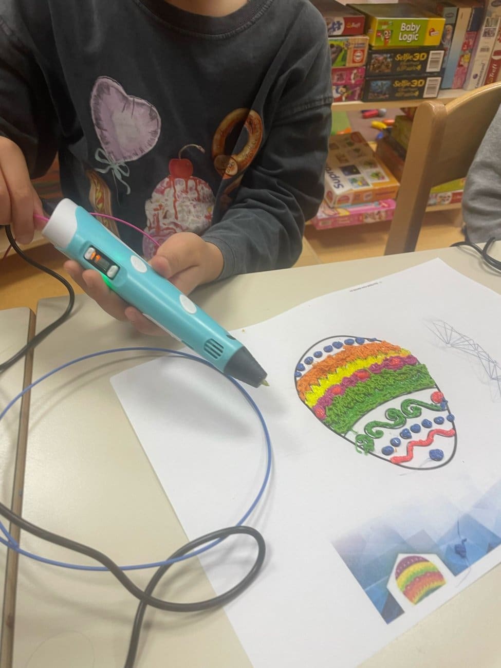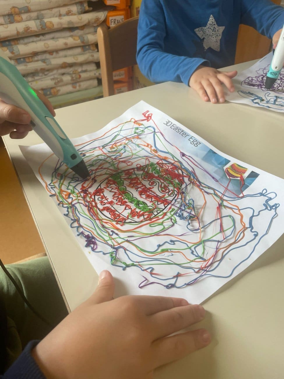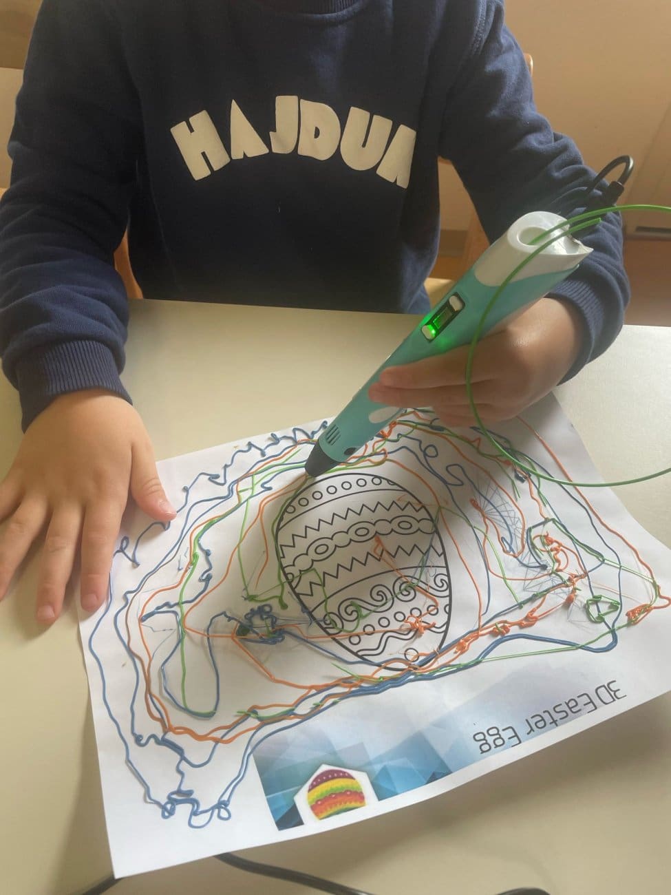 Pod vodstvom stručne suradnice Lucije Andree Skočić i uz pomoć odgojiteljica, mali sudionici su 3D olovkom crtali i ukrašavali šarena uskrsna jaja. Ova zanimljiva tehnološko-kreativna aktivnost spojila je zabavu s razvojem motoričkih vještina i potaknula djecu na istraživanje novih oblika izražavanja.
