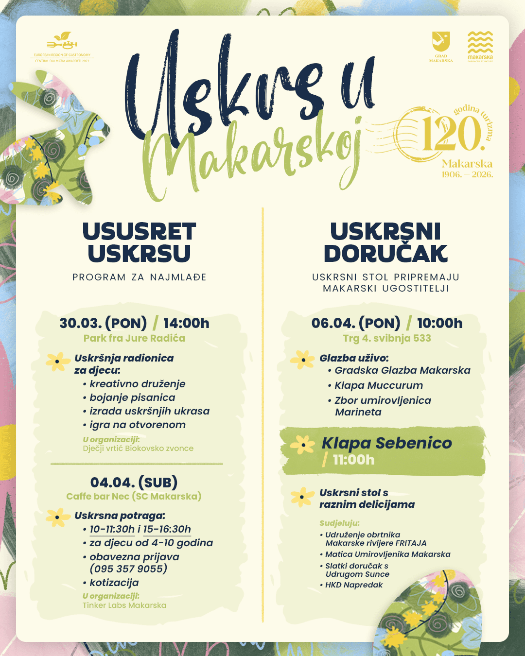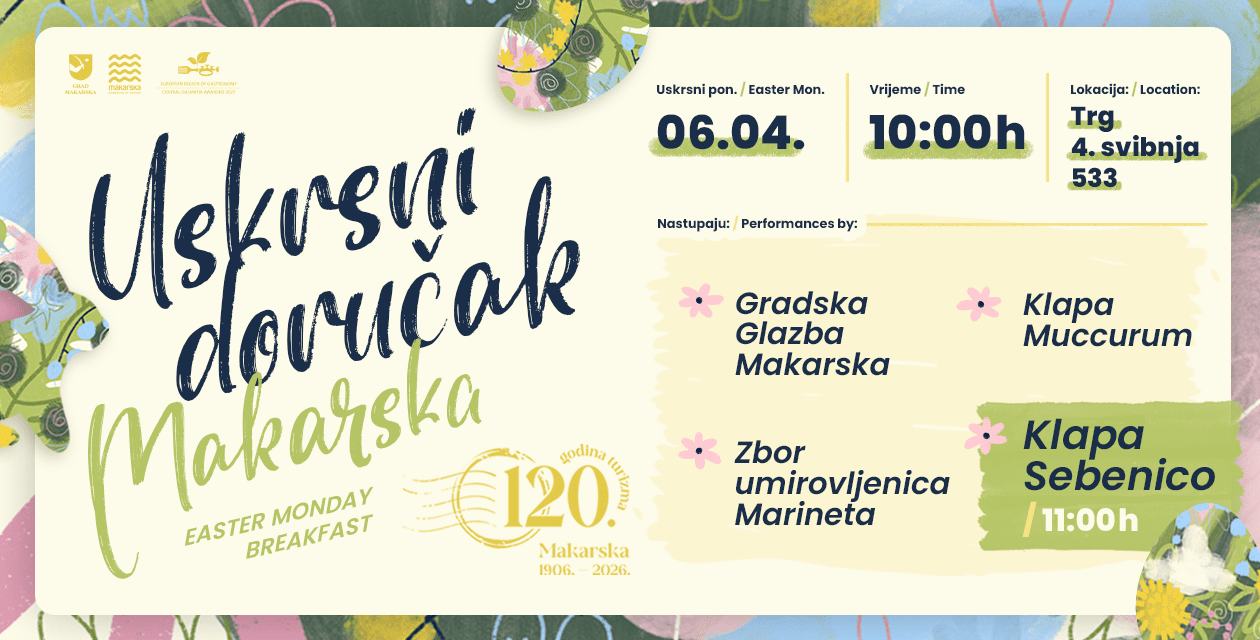 U Makarskoj nas i ove godine očekuje posebno osmišljen uskrsni program u organizaciji Grada Makarske i TZG Makarske, koji spaja tradiciju, zajedništvo i bogatu gastronomsku ponudu. Posjetitelji su pozvani da dožive autentičan blagdanski ugođaj i uživaju u lokalnim specijalitetima koje pripremaju makarski ugostitelji.