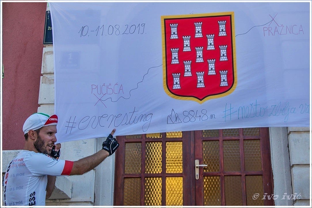 Što je to Everesting? Nešto vrlo "jednostavno". Odaberete bilo koje brdo, bilo gdje u svijetu i vozite uzbrdo, ponavljate tu jednu aktivnost dok se ne popnete na 8.848 m kolika je ekvivalentna visina Mt Everesta. Frane je odabrao rutu Pučišća-Pražnica i cilj mu je bio 24 uspona kroz 18 sati, s najviše 2 sata pauze, a sve to s glavnim ciljem odvoziti brački Everest za Bračke pupoljke.