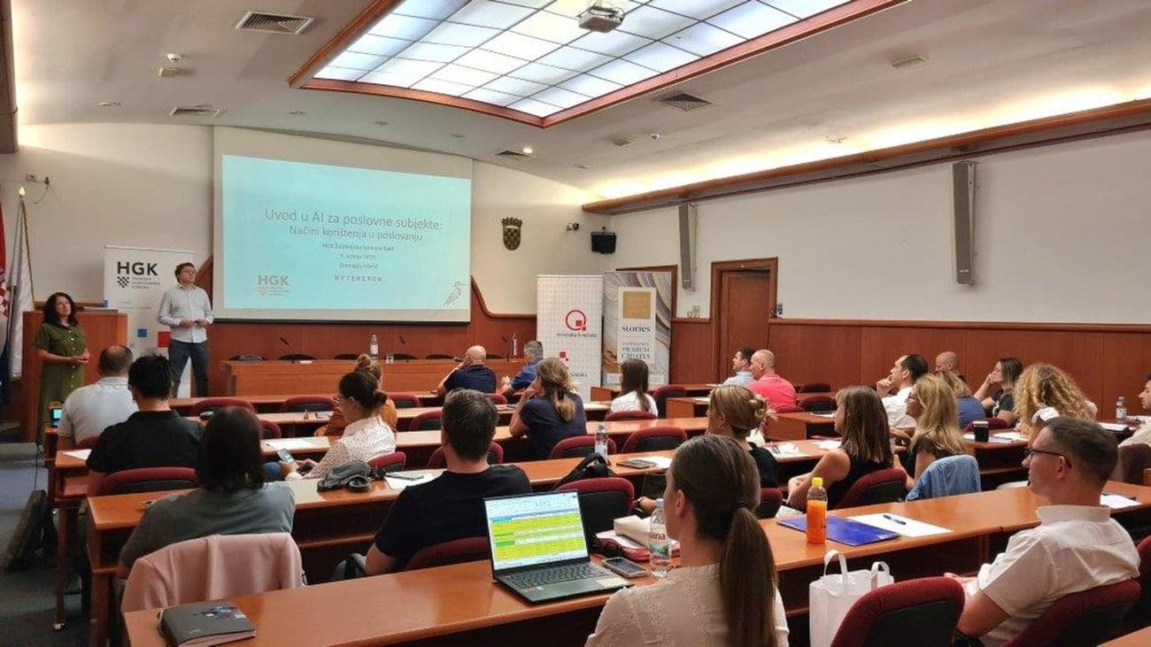 U okviru AI akademije Hrvatske gospodarske komore, održana je 9. lipnja u HGK - Županijskoj komori Split odlično posjećena radionica ''Uvod u AI za poslovne subjekte i način korištenja u poslovanju''. Radionica je bila usmjerena na generativni AI i praktične zadatke pomoću kojih su polaznici dobili konkretan uvid u mogućnosti korištenja alata umjetne inteligencije u svakodnevnom poslovanju.