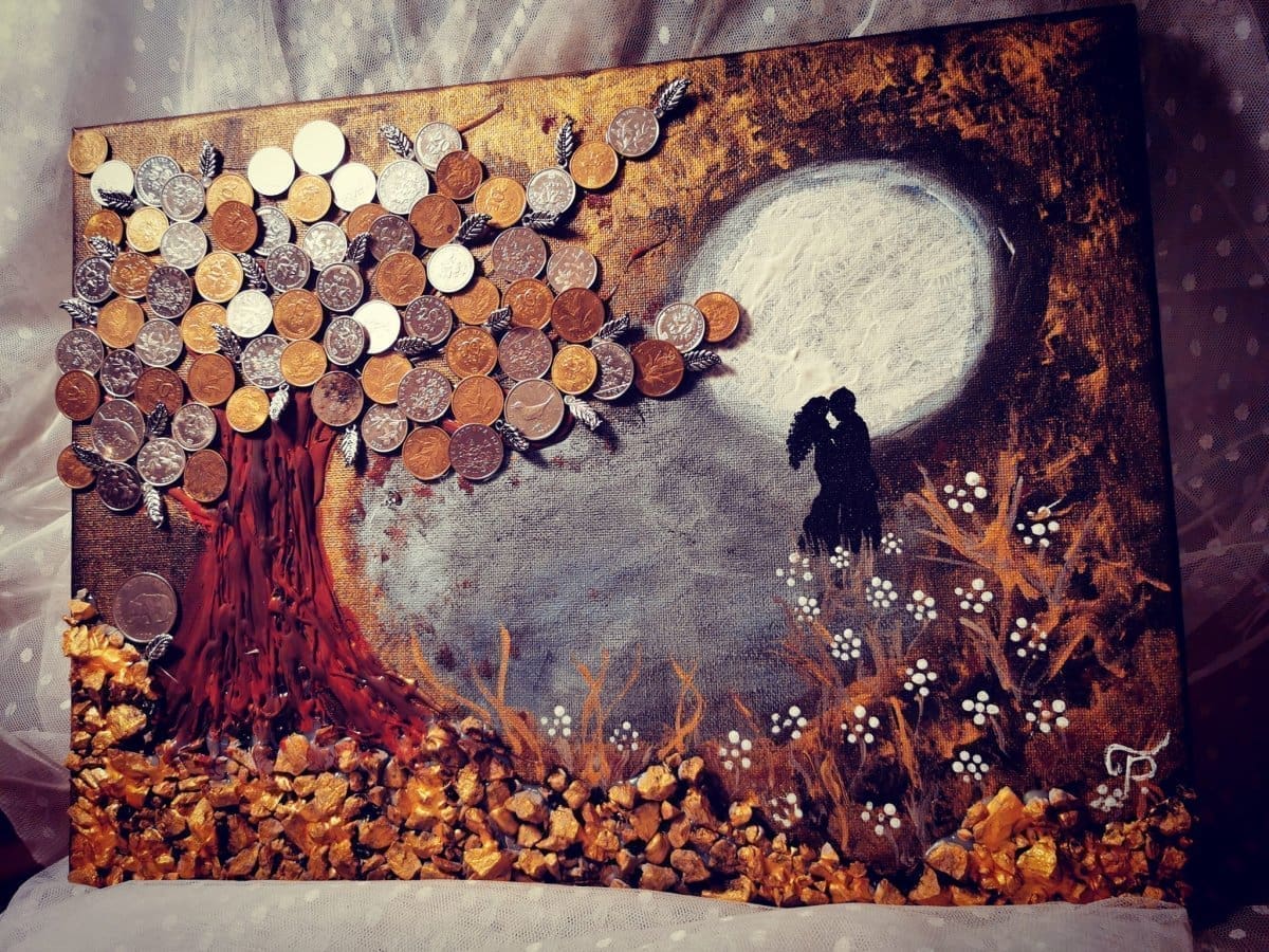 "Tako je došla ideja da sačuvamo u našem domu na kreativan način naše kune/lipe. Pošto sam sve od materijala imala kod kuće, vrijeme izrade trajalo je dva dana. Kovanice, koje sam koristila, su bile od 5 lipa (u iznosu od 0.65 kuna), 10 lipa (u iznosu od 1.90 kuna), 20 lipa (u iznosu od 5 kuna), 50 lipa u iznosu od 6 kuna, 1 kovanica od 1 kune, 1 kovanica od 2 kune te 1 kovanica od 5 kuna. Sve zajedno iznos kovanica na platnu je 21,55 kuna", rekla je Tamara.