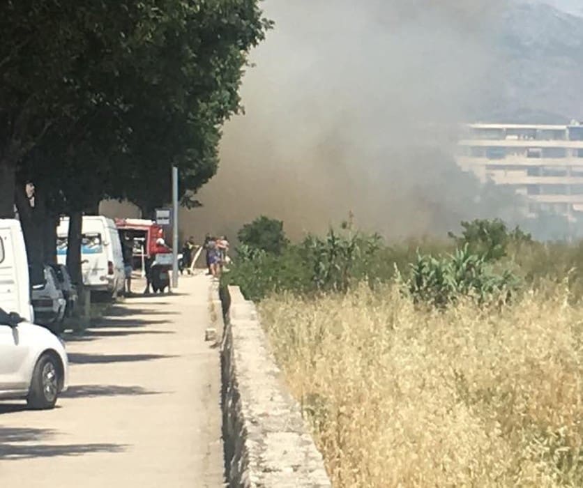 Iza 14:30 sati došlo je do izbijanja požara na livadi pored balotaškog igrališta, u blizini križanja Vukovarske i Velebitske ulice u Splitu.