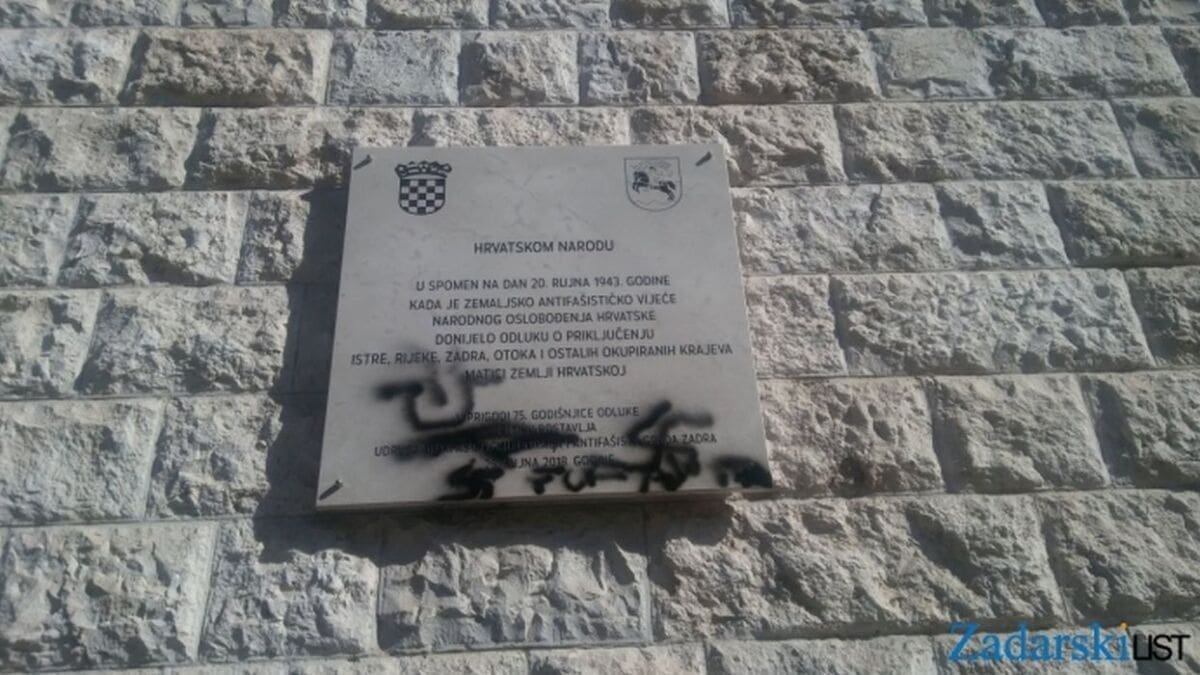 Anifašističko obilježje na Poluotoku u zadarskoj ulici Jurja Dalmatinca, podignuto u spomen desete godišnjice oslobođenja Zadra od strane Gradskog odbora saveza boraca Narodnooslobodilačkog rata 1. studenog 1954. godine, osvanulo je išarano fašističkim i ustaškim znakovljem. Osim spomen ploče, nepoznati počinitelji išarali su i dio Kopnenih vrata.