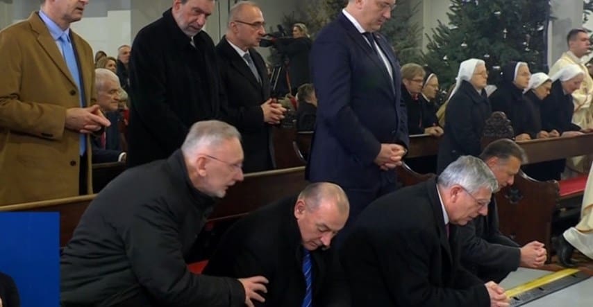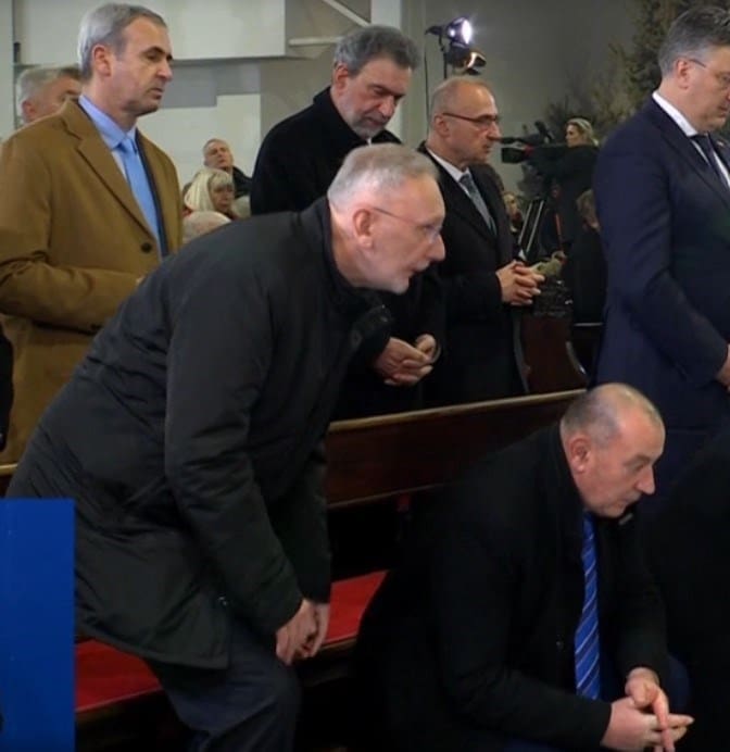 Twitterom se širi video s božićne mise iz Bogoslužnog prostora bl. Alojzija Stepinca na Kaptolu na kojoj je bio cijeli državni vrh. U prvom redu su uz Andreja Plenkovića bili Njojo, Željko Reiner, Tomo Medved i Davor Božinović koji se spetljao tijekom molitve Vjerovanje.