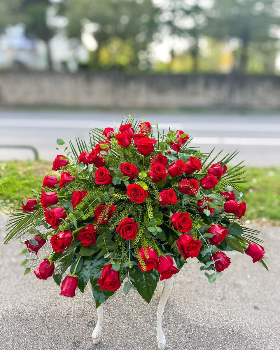 - Crvene ruže: simboliziraju ljubav i poštovanje. Često se koriste za izražavanje dubokih osjećaja divljenja prema pokojniku;