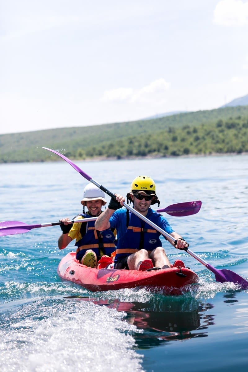 • kacige (koje se zadužuju na startu canyoninga). Potrebno ih je imati tijekom canyoninga, vožnje biciklom i vožnje kajakom. Moraju se razdužiti na cilju.
