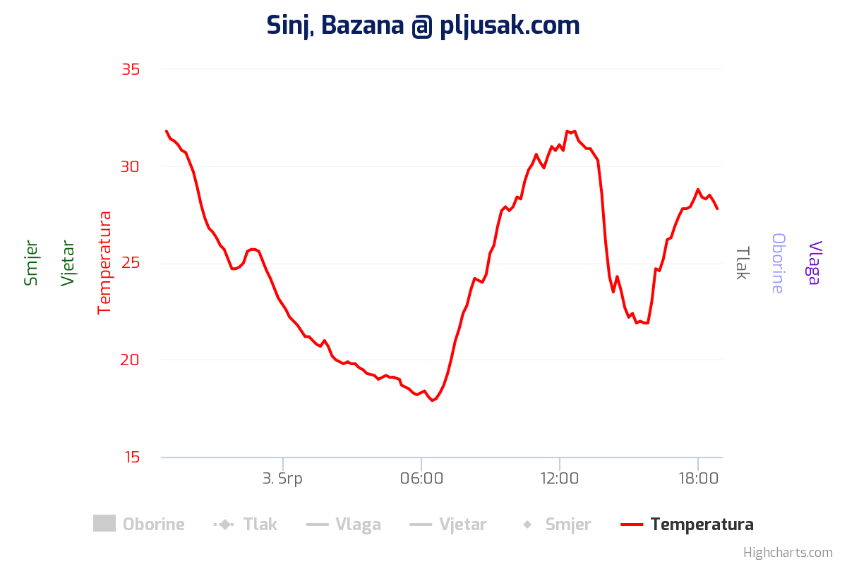 U većini predjela prevladavalo je suho, ali je u poslijepodnevnim satima došlo do mjestimice jakog razvoja oblaka, uglavnom u Cetinskoj krajini.