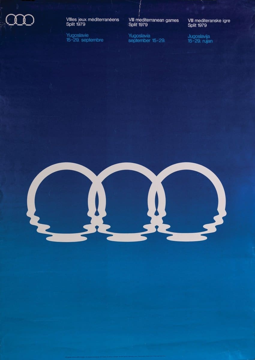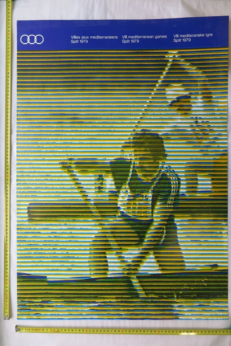 Plakat Mediteranske igre Split 1979., izrada: TK Gorenjski tisak, Kranj, Boris Ljubičić, CIO - Centar za industrijsko oblikovanje, Zagreb, HŠPOM-9262